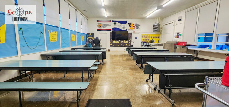 • Cafeteria and library settings for scenes depicting school life and community engagement