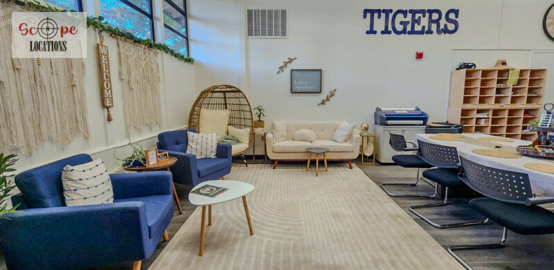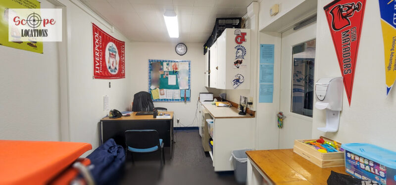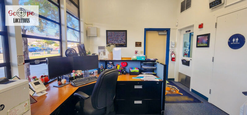 - Administrative office for interactions with school staff or administrative scenes