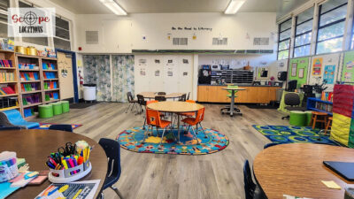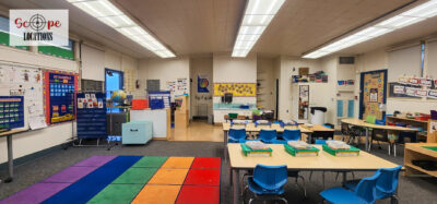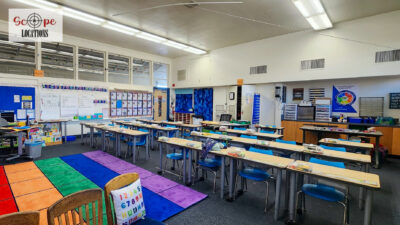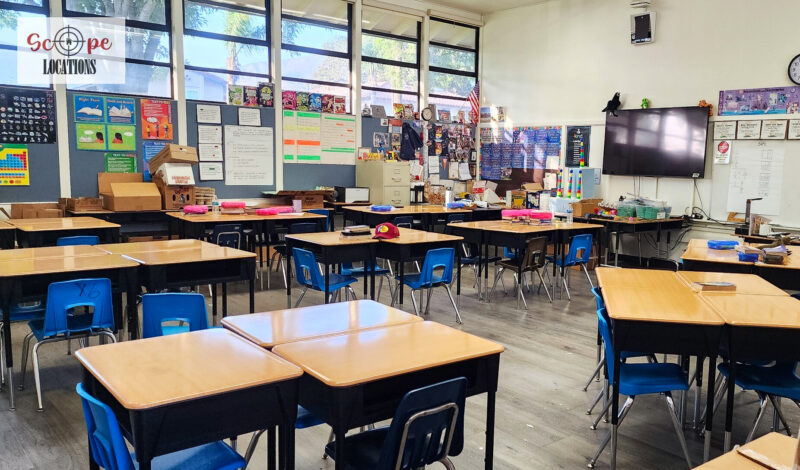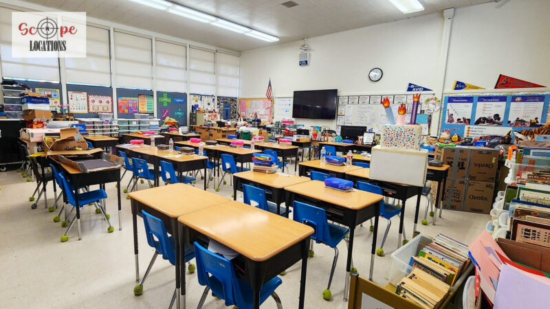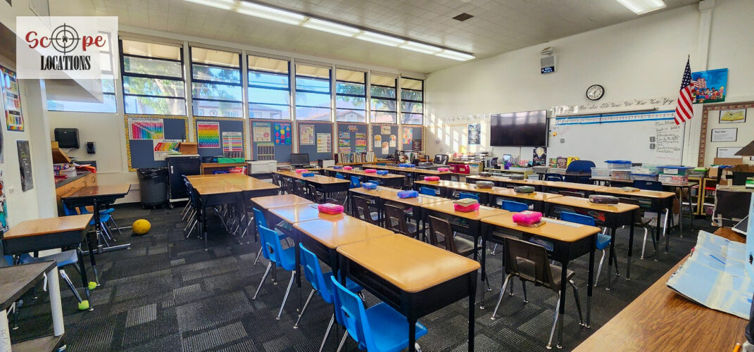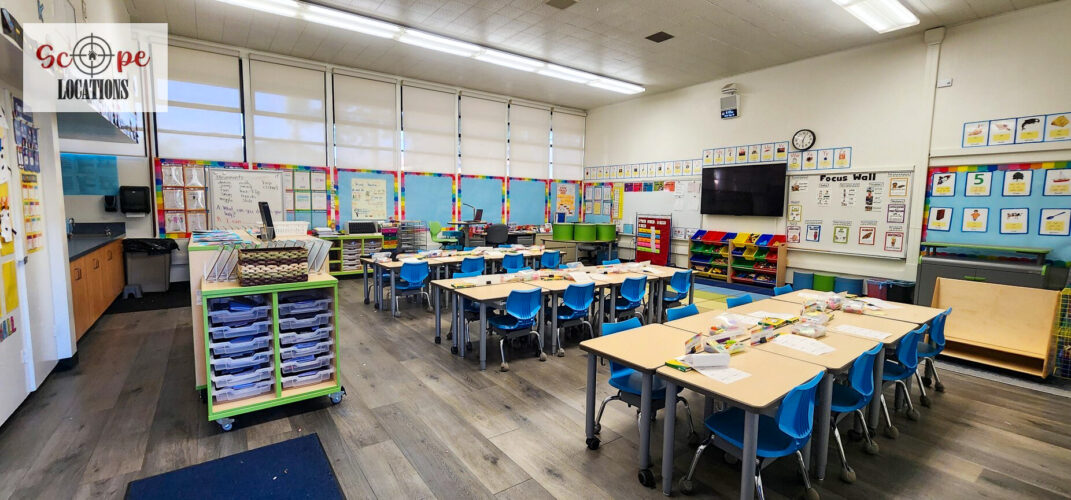 • Elementary school scenes in classrooms, hallways, and playgrounds