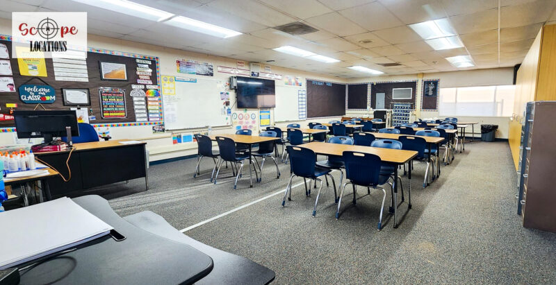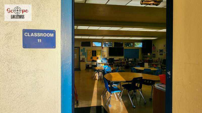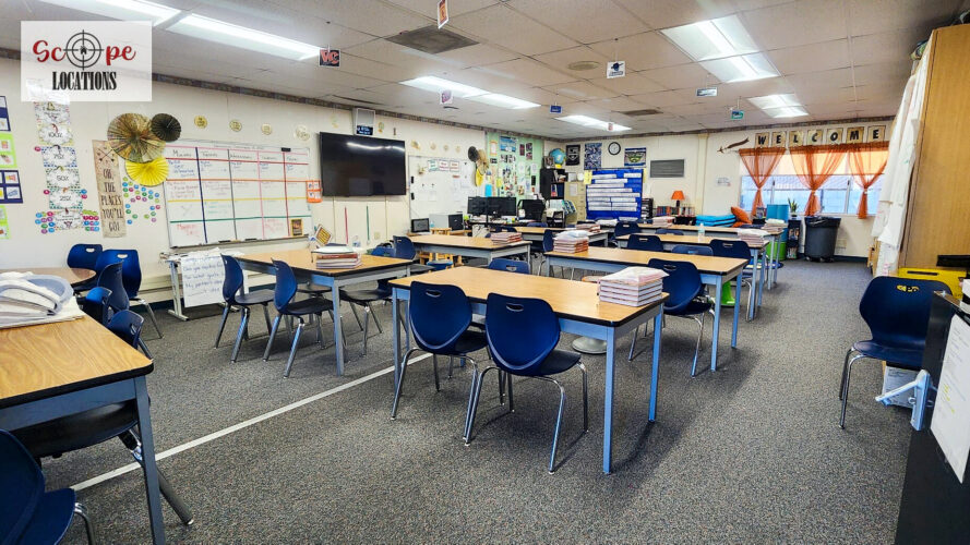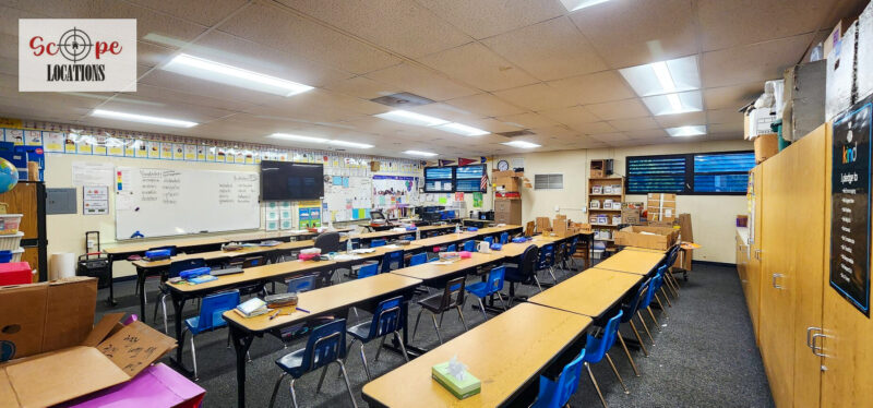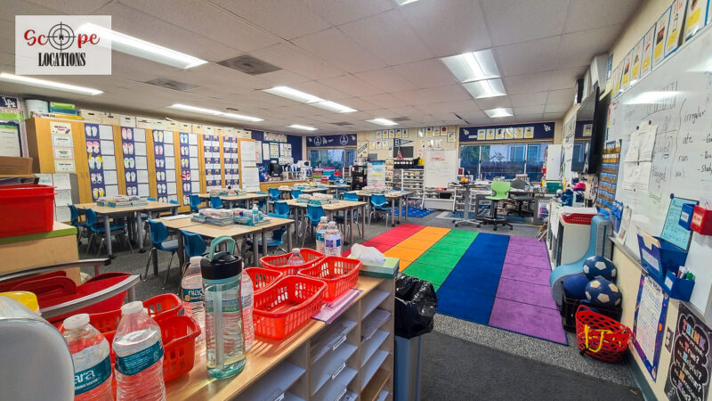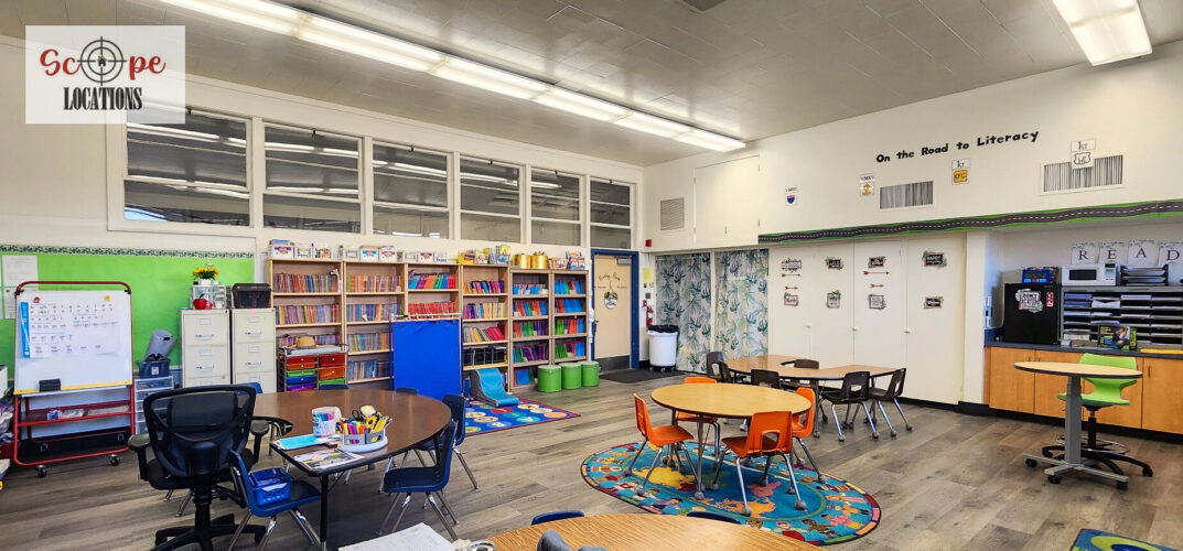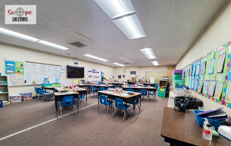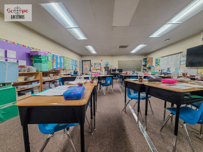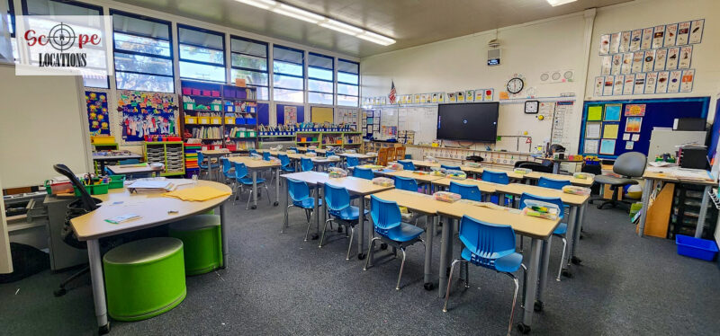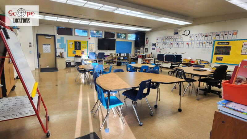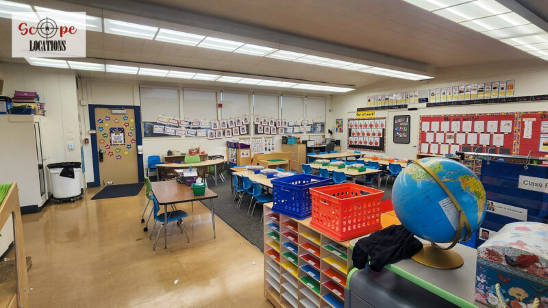 - Elementary school scenes in classrooms, hallways, and playgrounds