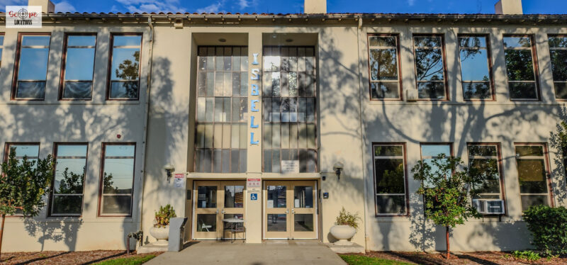 Traditional two-story rectangular building with large windows, originally constructed in the early 1900s and enhanced with modern upgrades. The architecture blends seamlessly with contemporary additions, creating a harmonious mix of classic and modern styles.