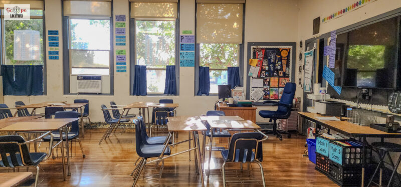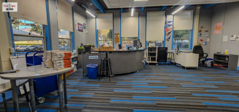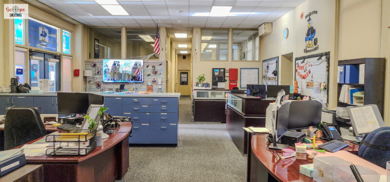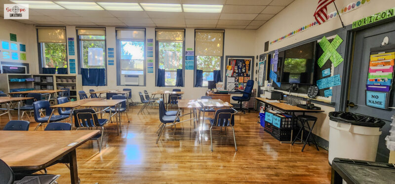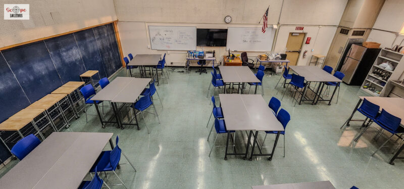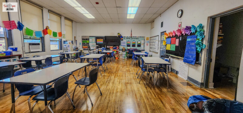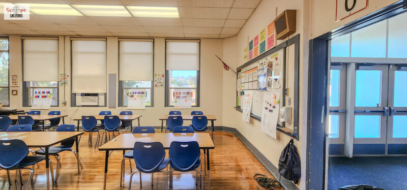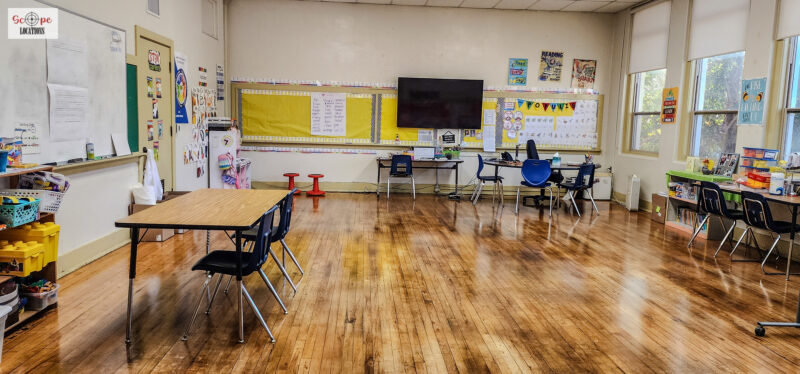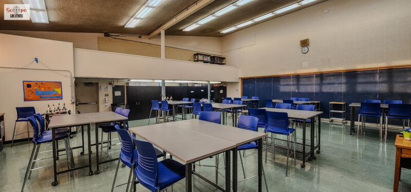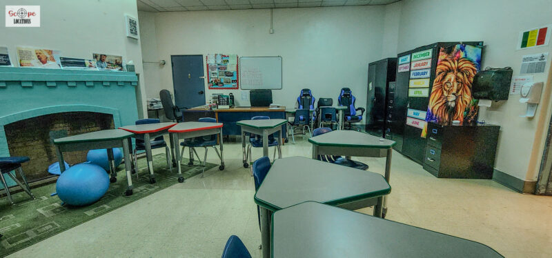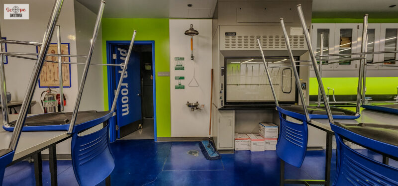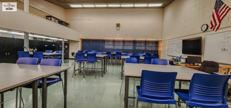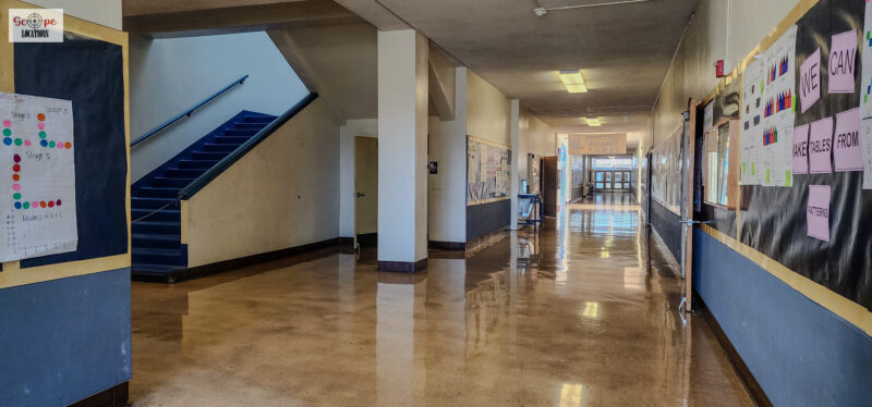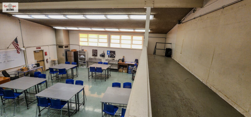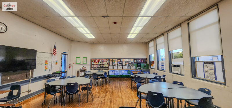 • The campus features multiple classroom buildings, with a main two-story building showcasing spacious corridors and broad staircases. A newly constructed wing houses a state-of-the-art gymnasium and modern science labs. Additional facilities include bungalow-style classrooms and a standalone industrial-style building with exposed metal ceiling beams