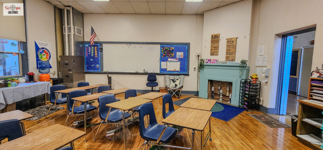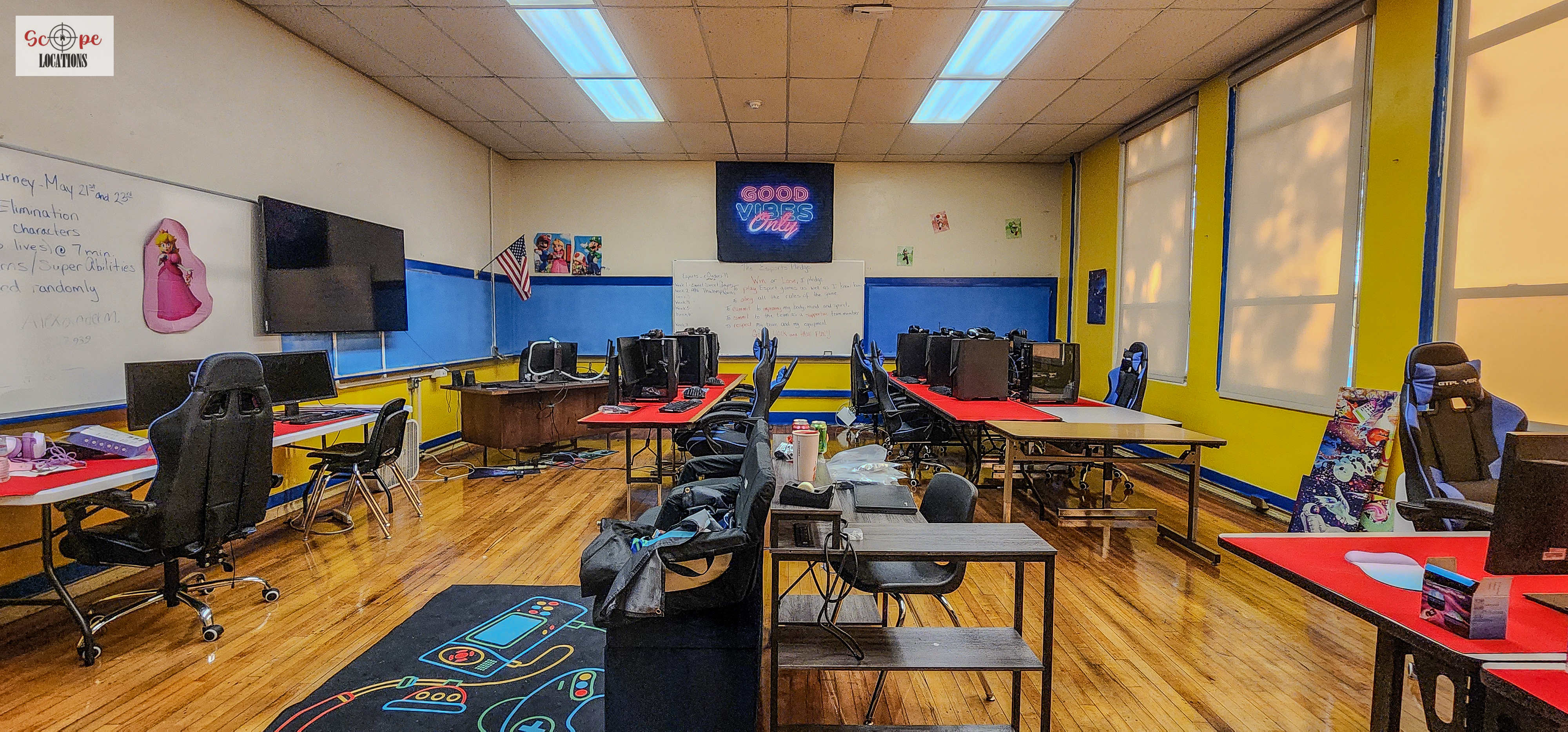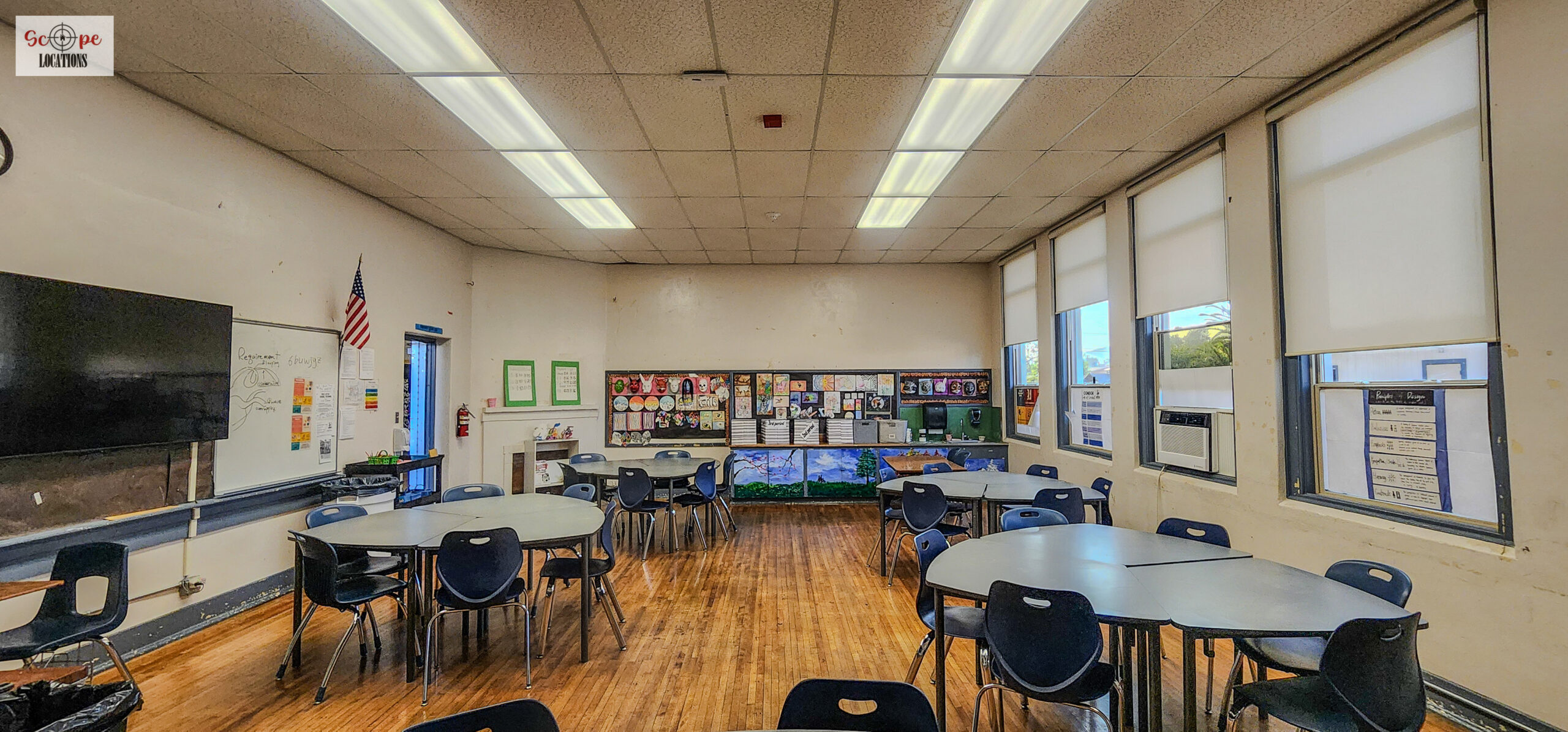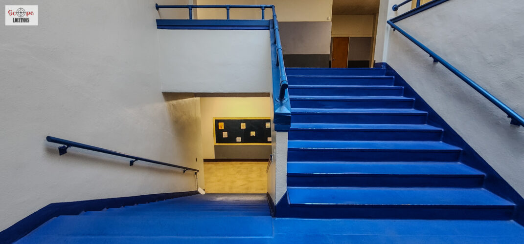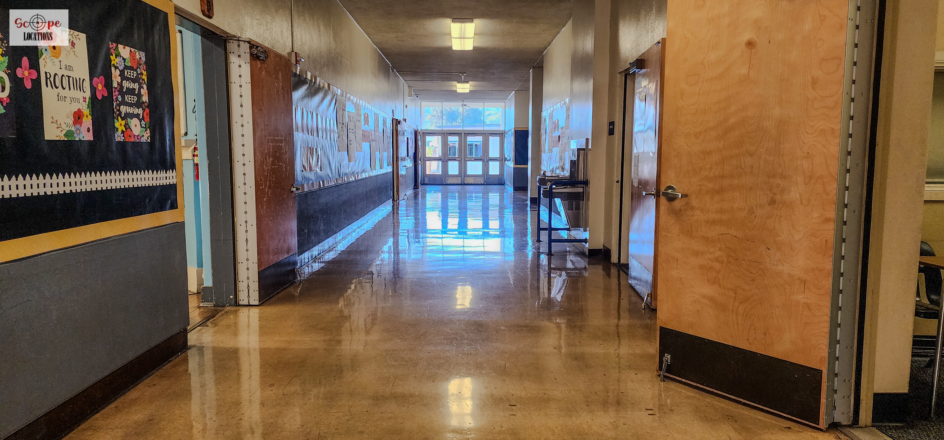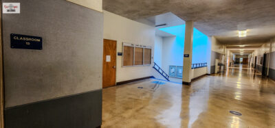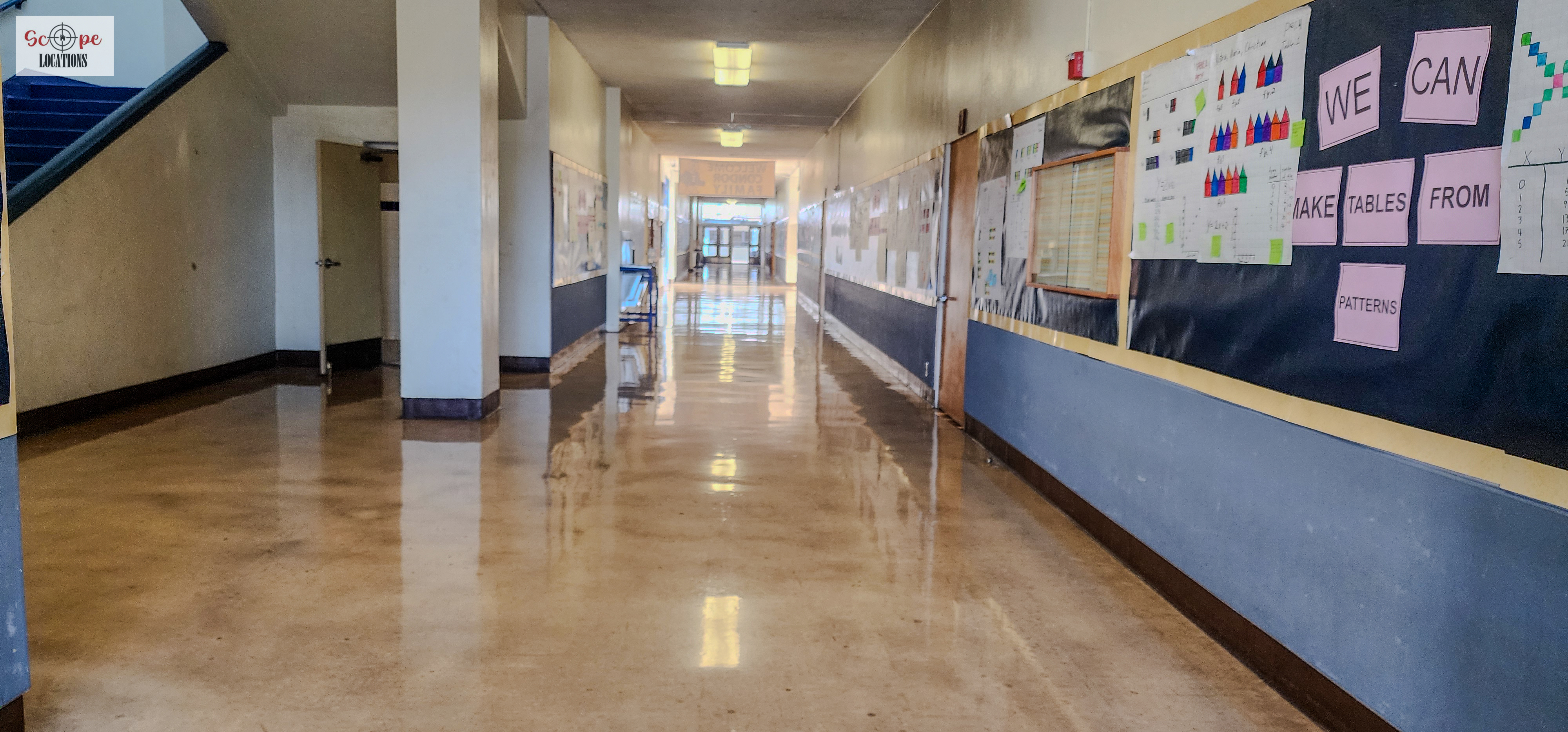 • The campus features multiple classroom buildings, with a main two-story building showcasing spacious corridors and broad staircases. A newly constructed wing houses a state-of-the-art gymnasium and modern science labs. Additional facilities include bungalow-style classrooms and a standalone industrial-style building with exposed metal ceiling beams