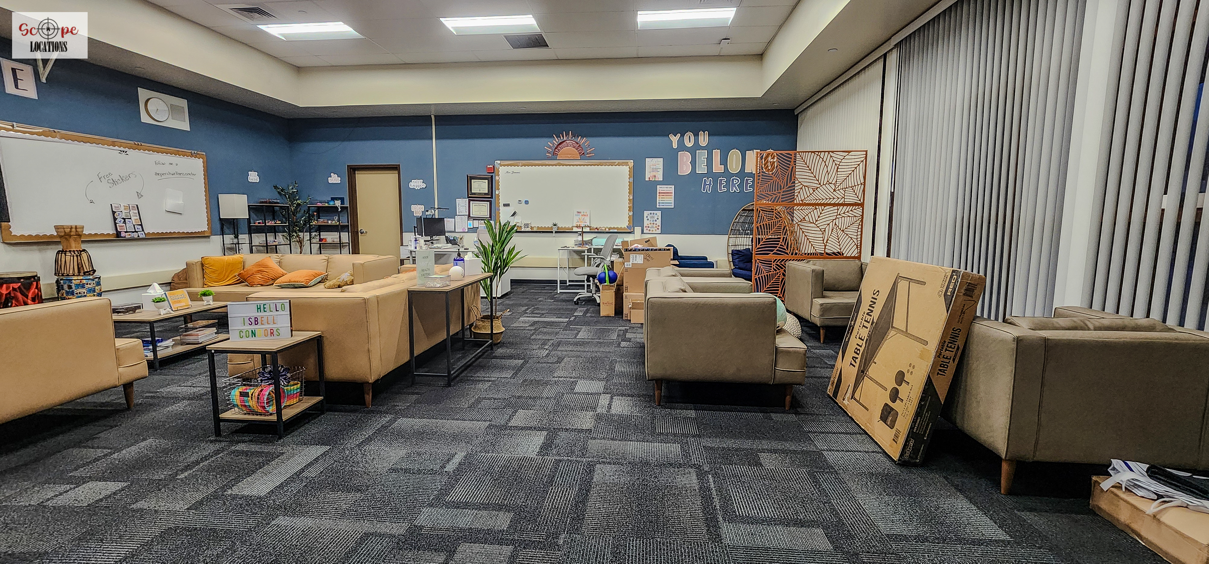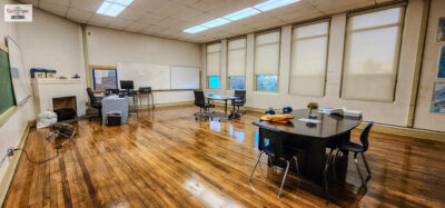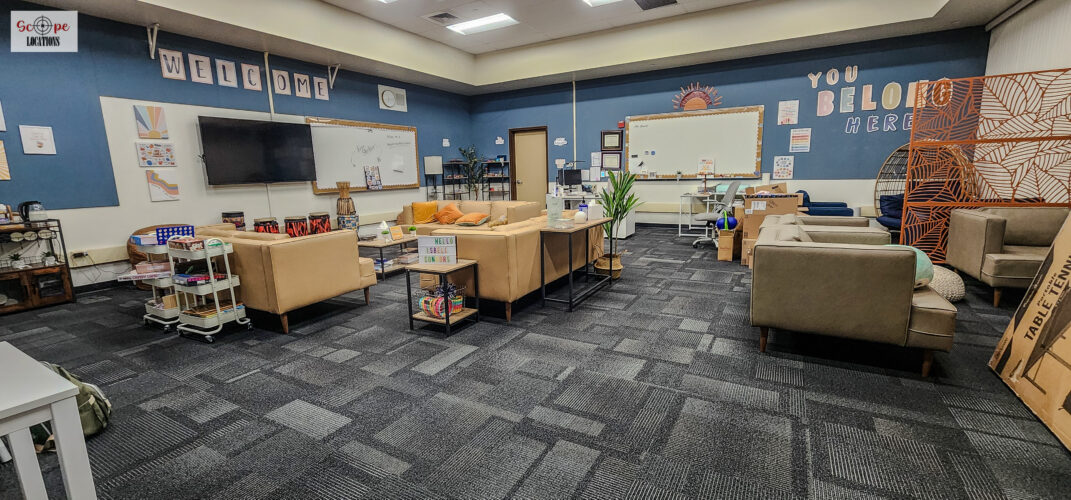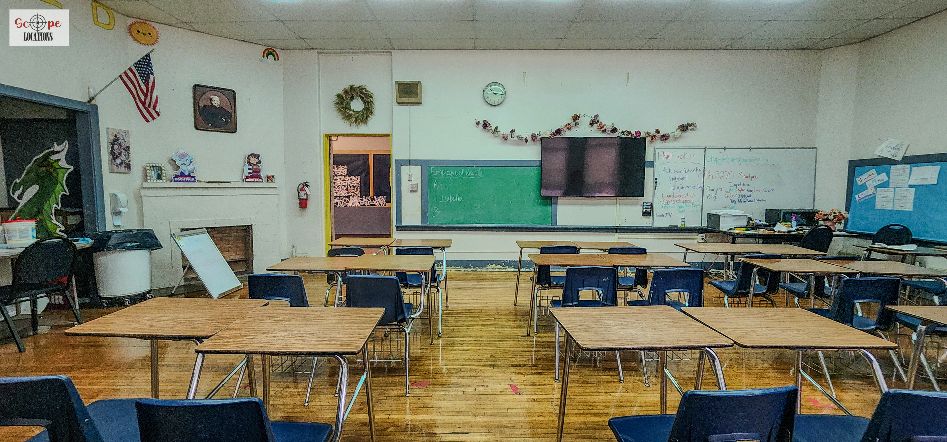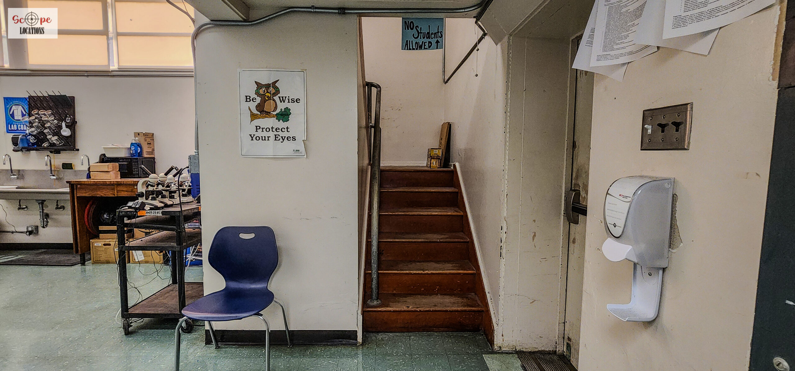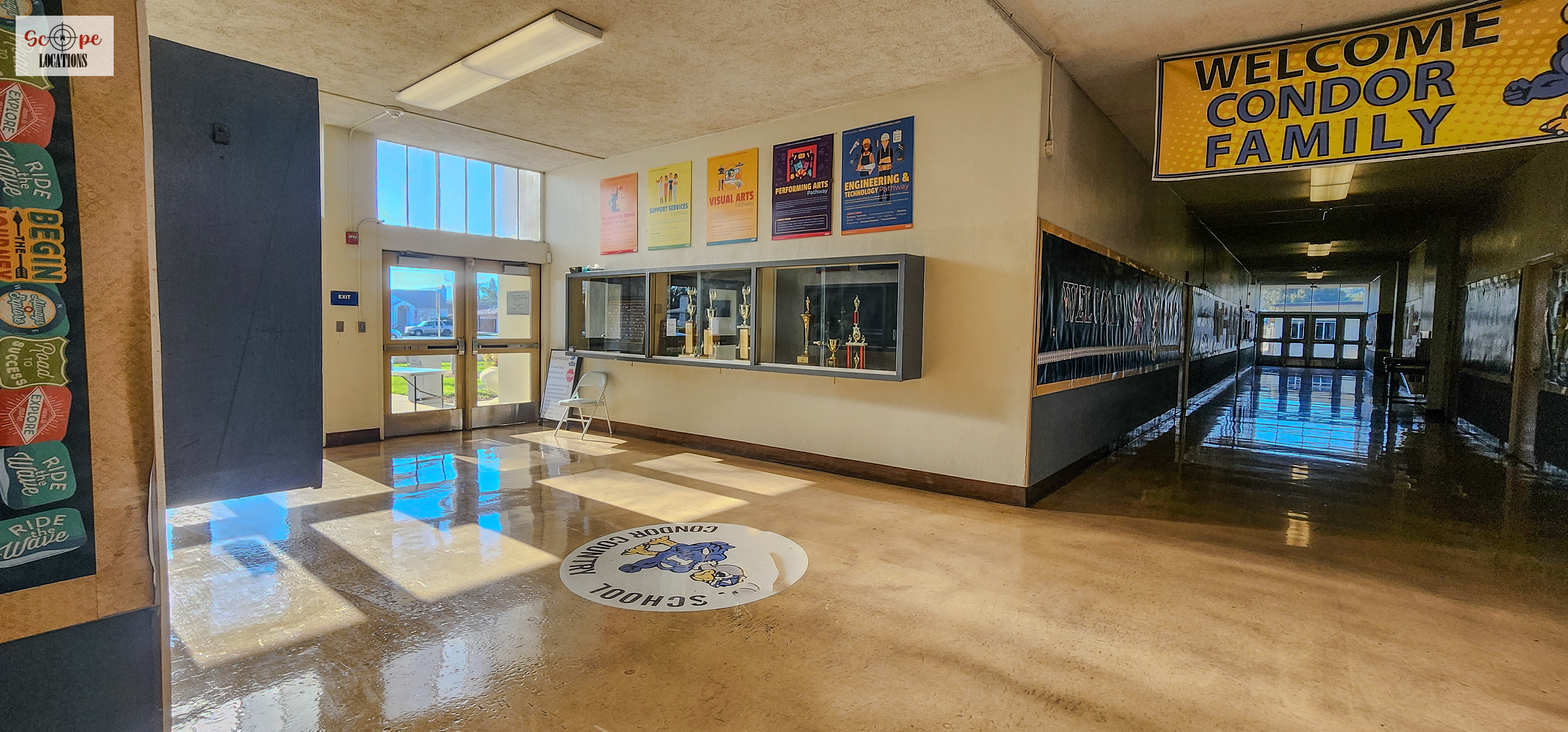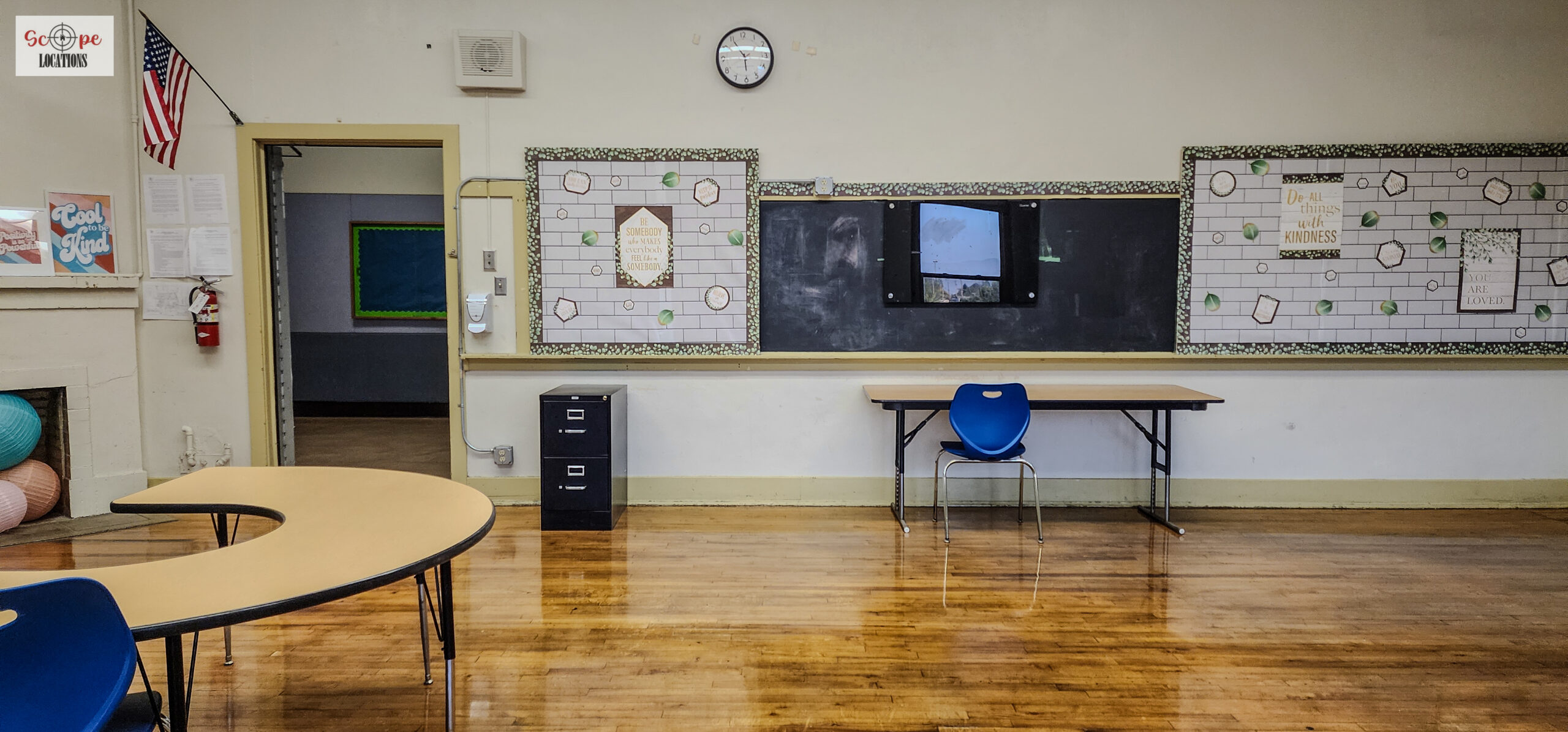 • The campus features multiple classroom buildings, with a main two-story building showcasing spacious corridors and broad staircases. A newly constructed wing houses a state-of-the-art gymnasium and modern science labs. Additional facilities include bungalow-style classrooms and a standalone industrial-style building with exposed metal ceiling beams