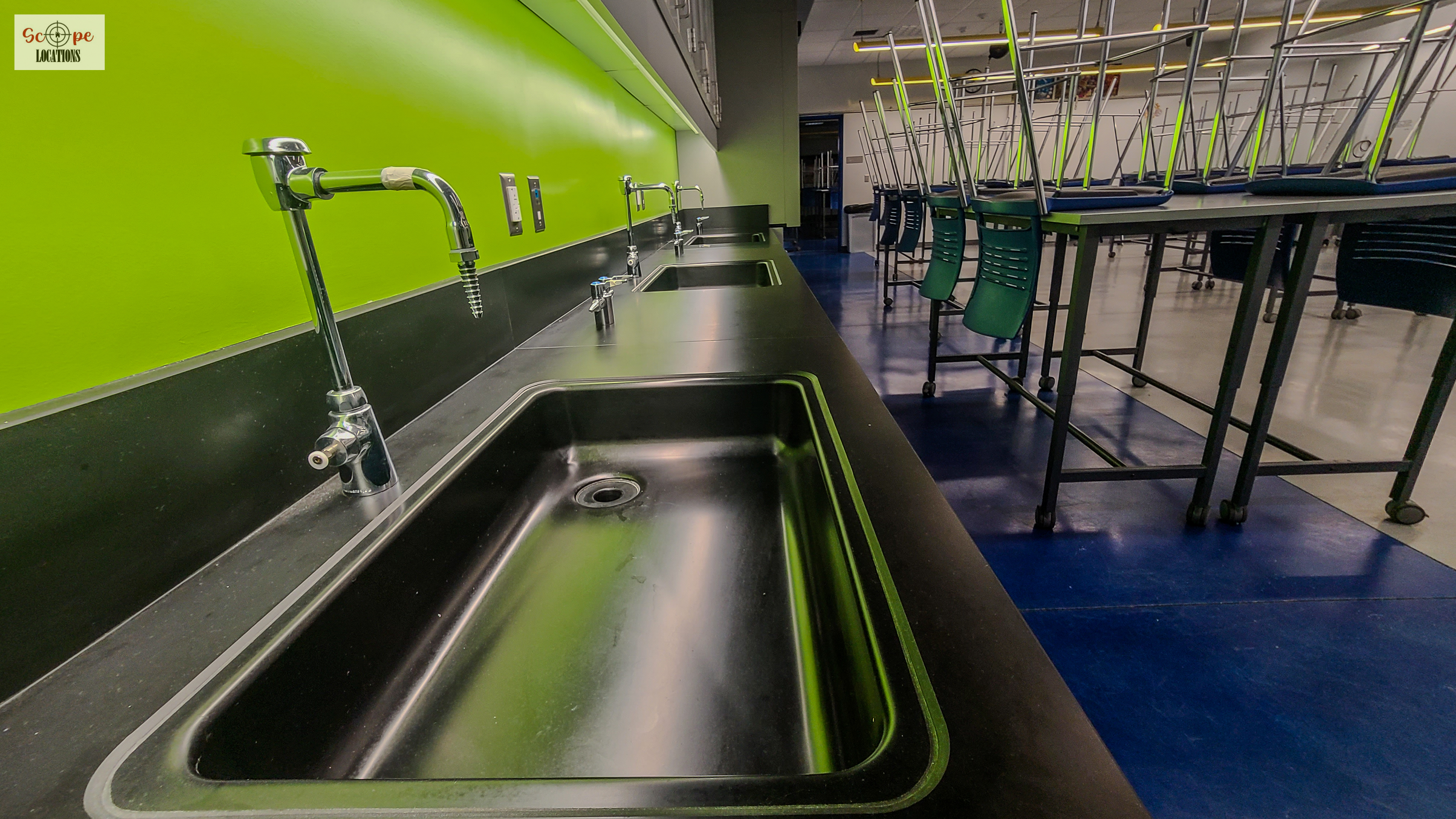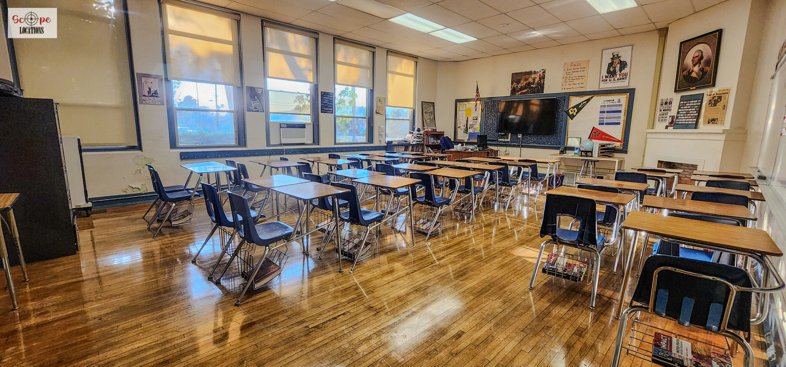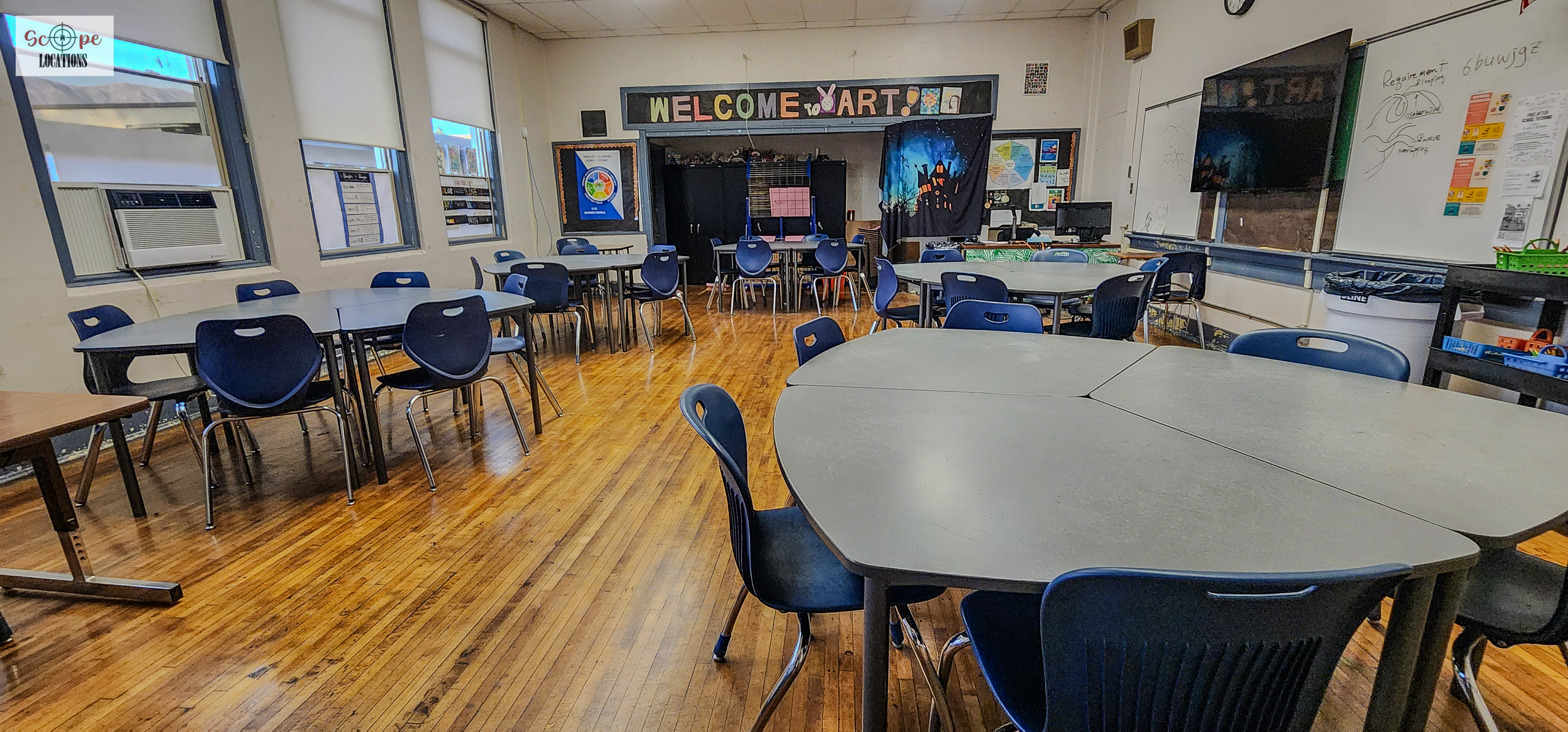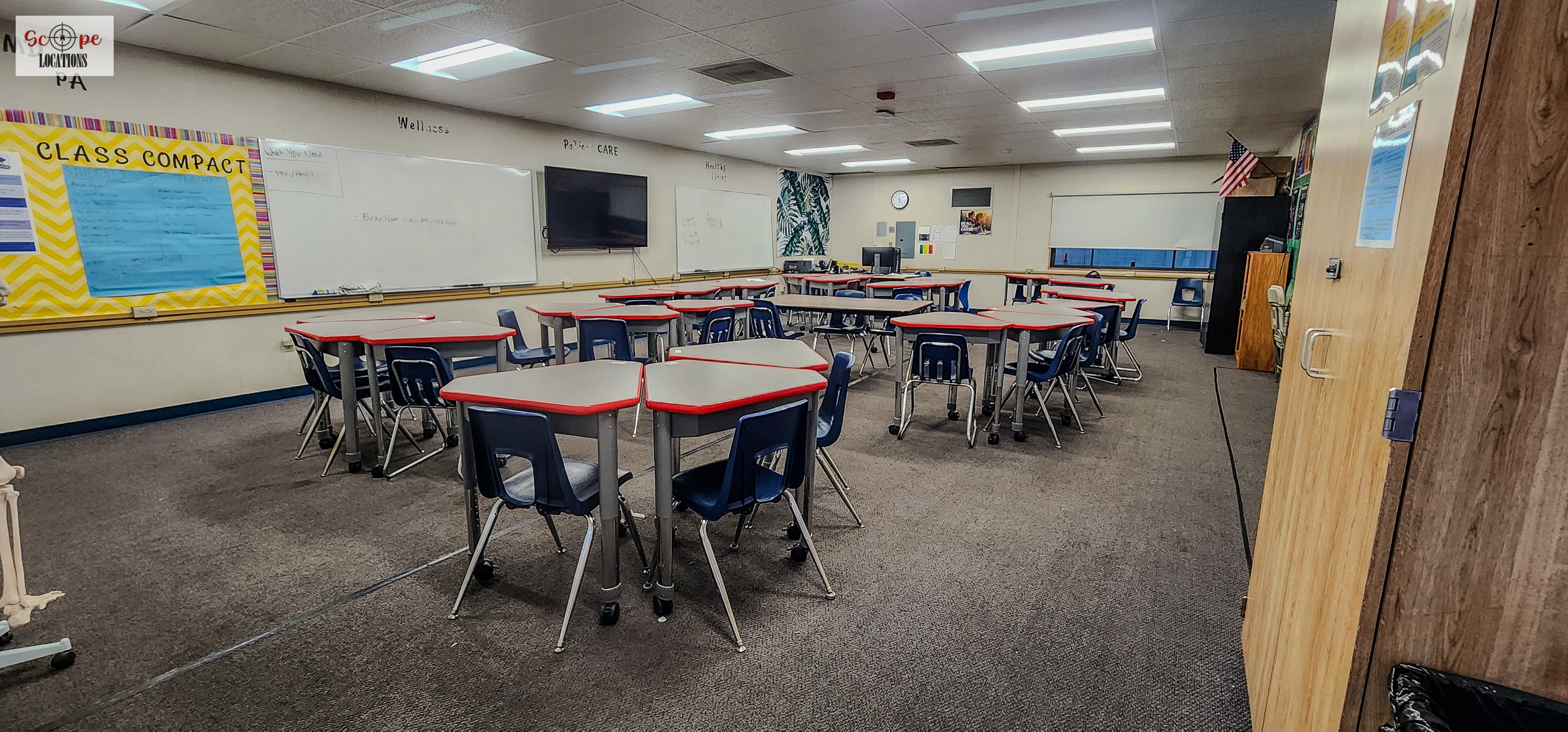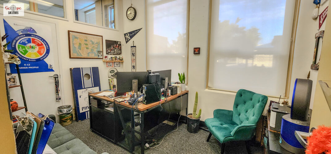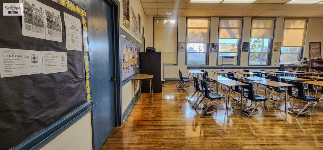 • The campus features multiple classroom buildings, with a main two-story building showcasing spacious corridors and broad staircases. A newly constructed wing houses a state-of-the-art gymnasium and modern science labs. Additional facilities include bungalow-style classrooms and a standalone industrial-style building with exposed metal ceiling beams