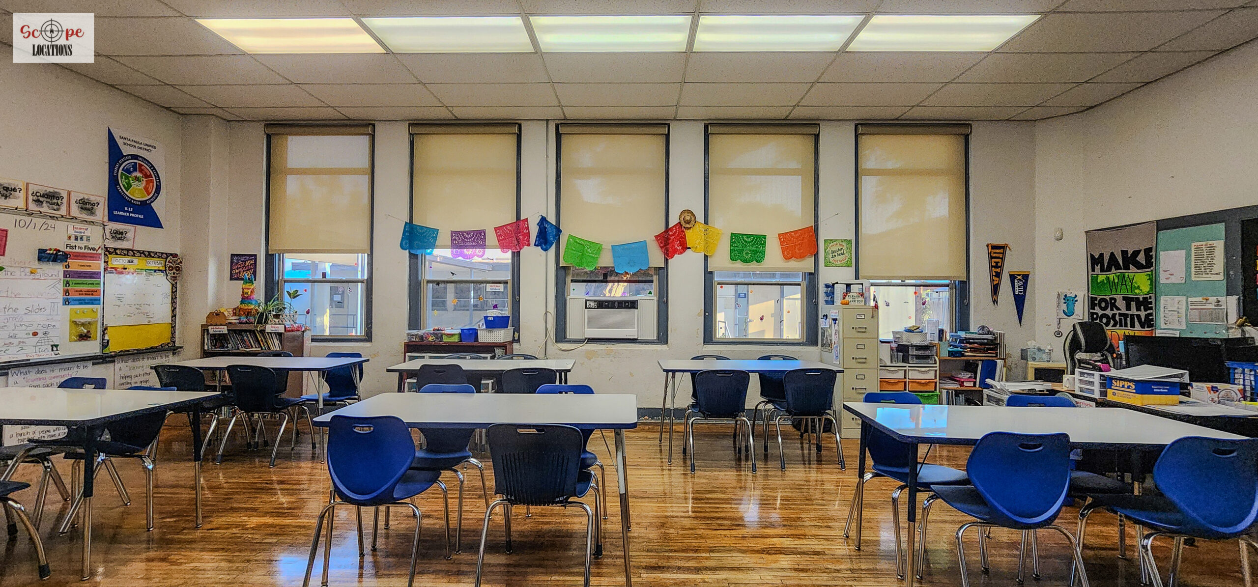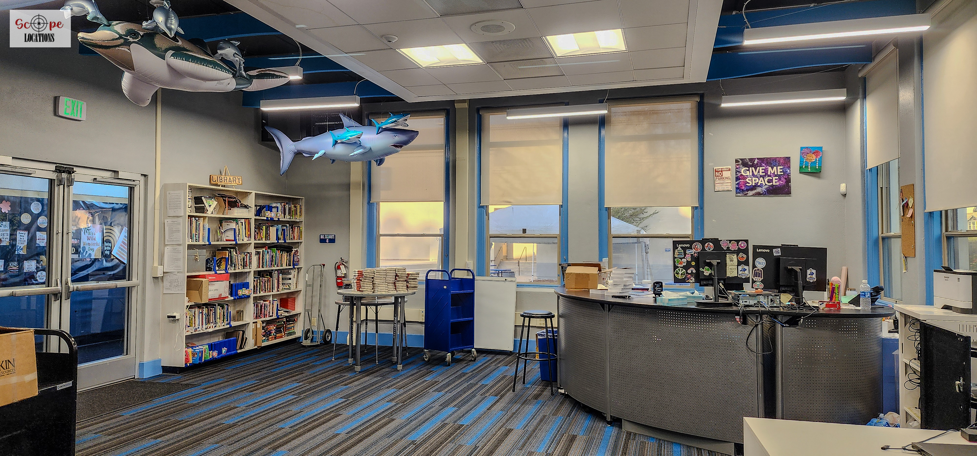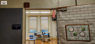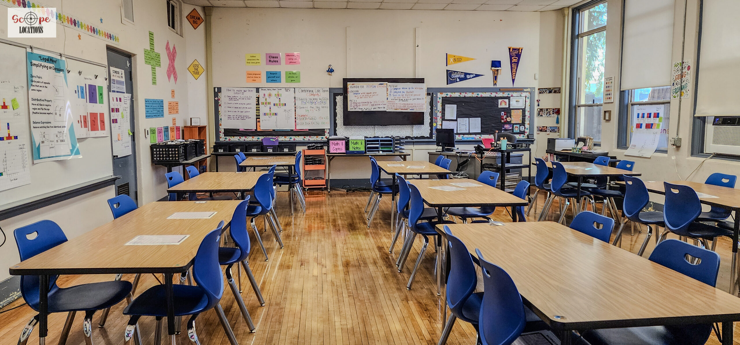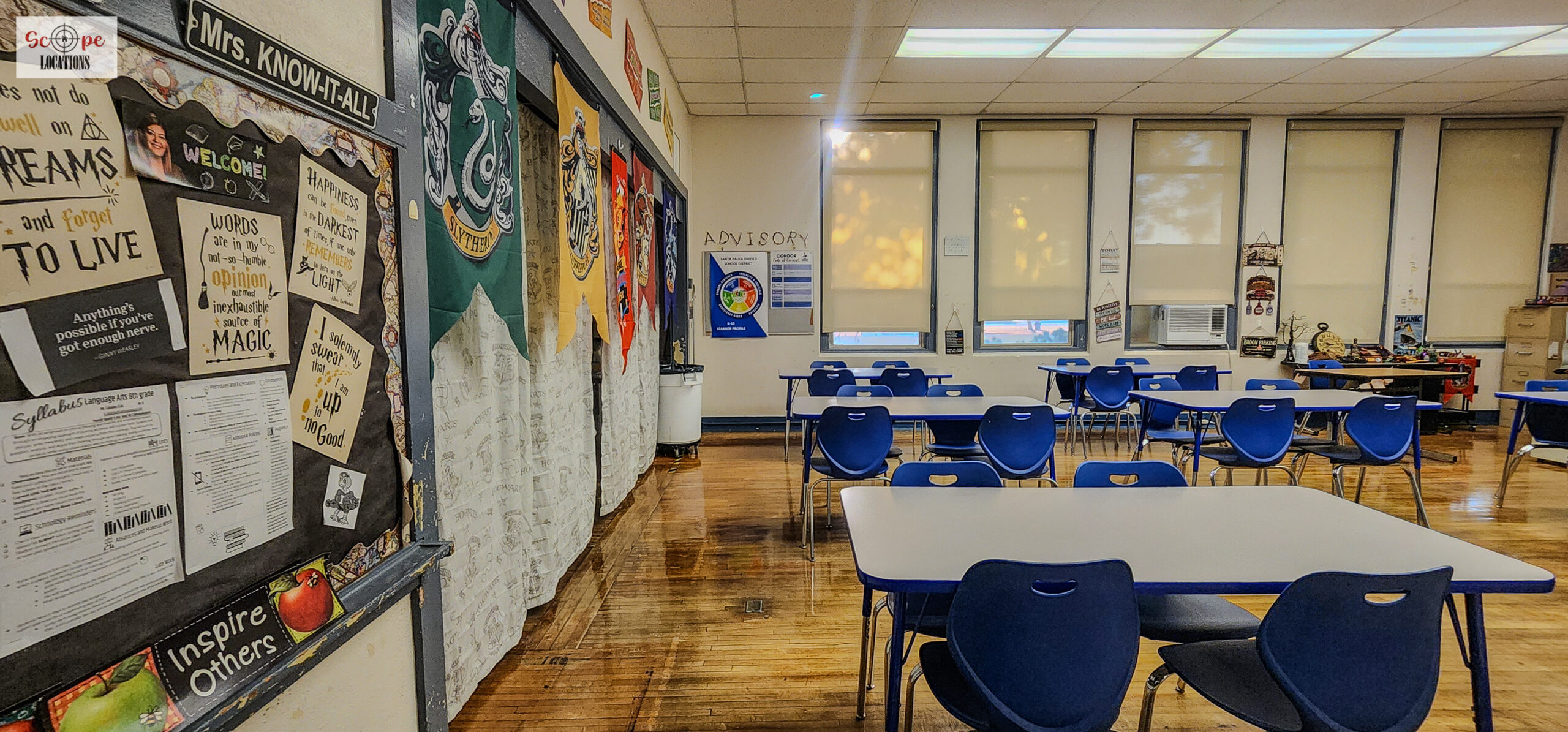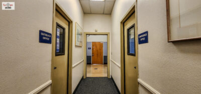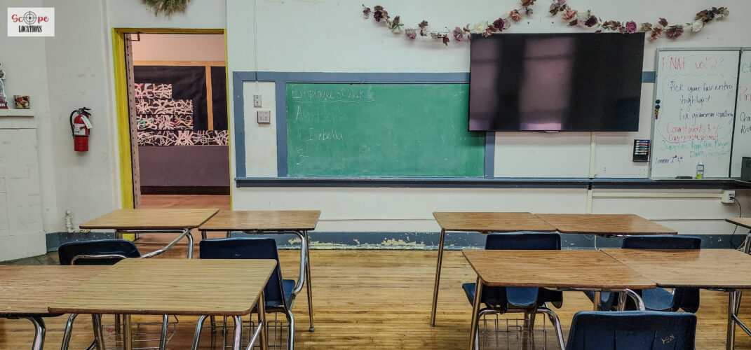 • The campus features multiple classroom buildings, with a main two-story building showcasing spacious corridors and broad staircases. A newly constructed wing houses a state-of-the-art gymnasium and modern science labs. Additional facilities include bungalow-style classrooms and a standalone industrial-style building with exposed metal ceiling beams