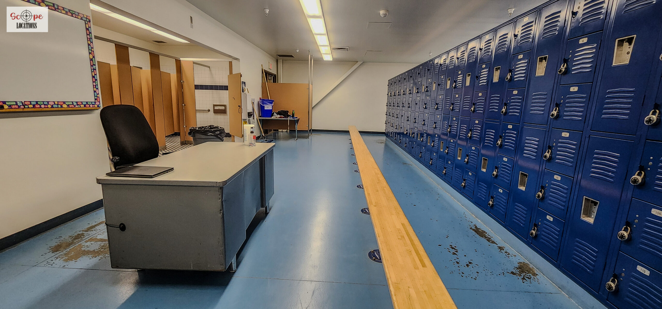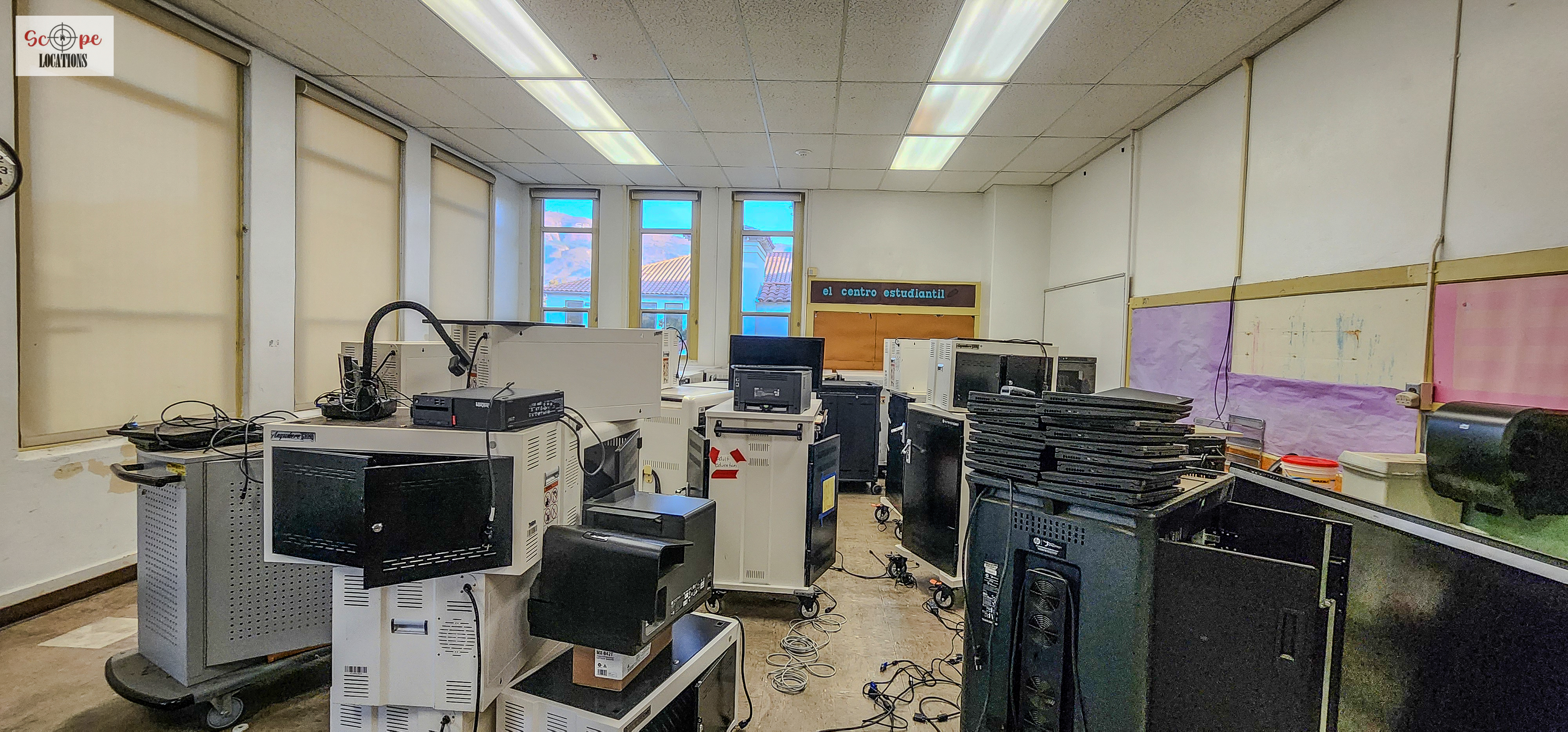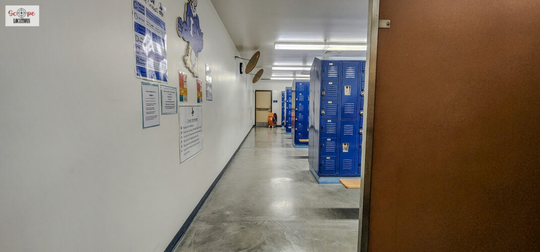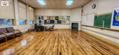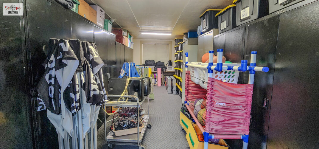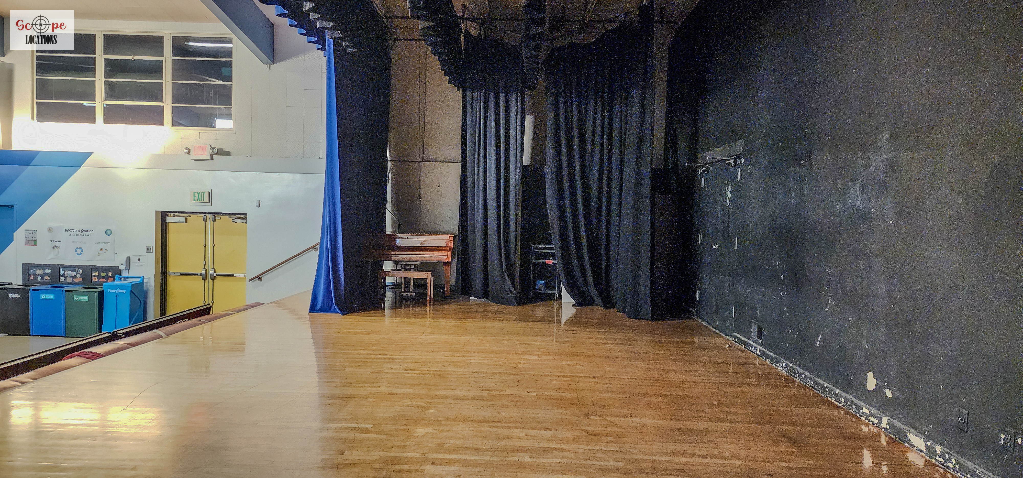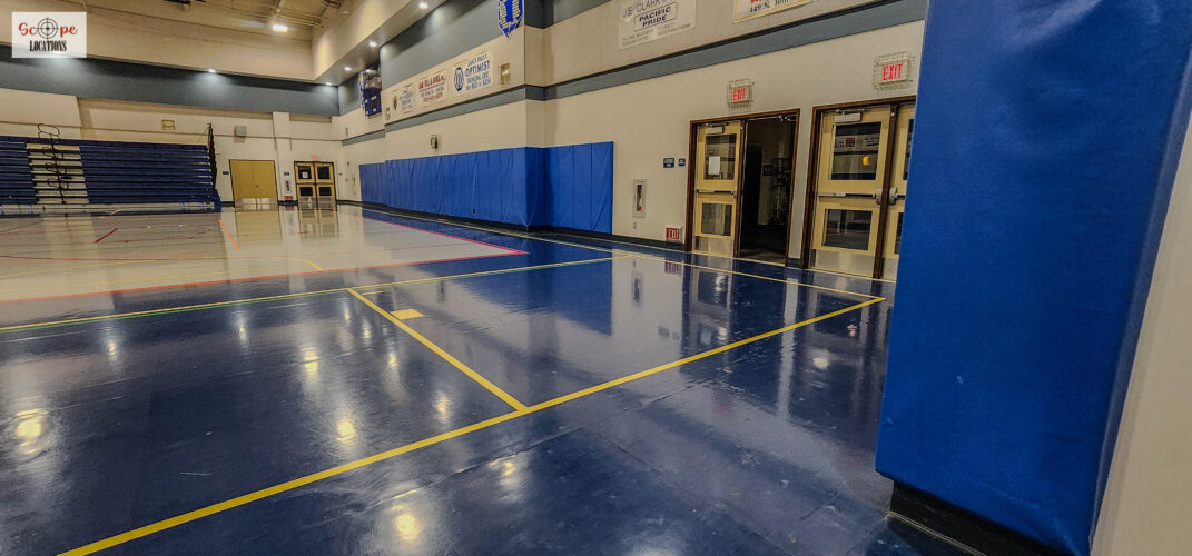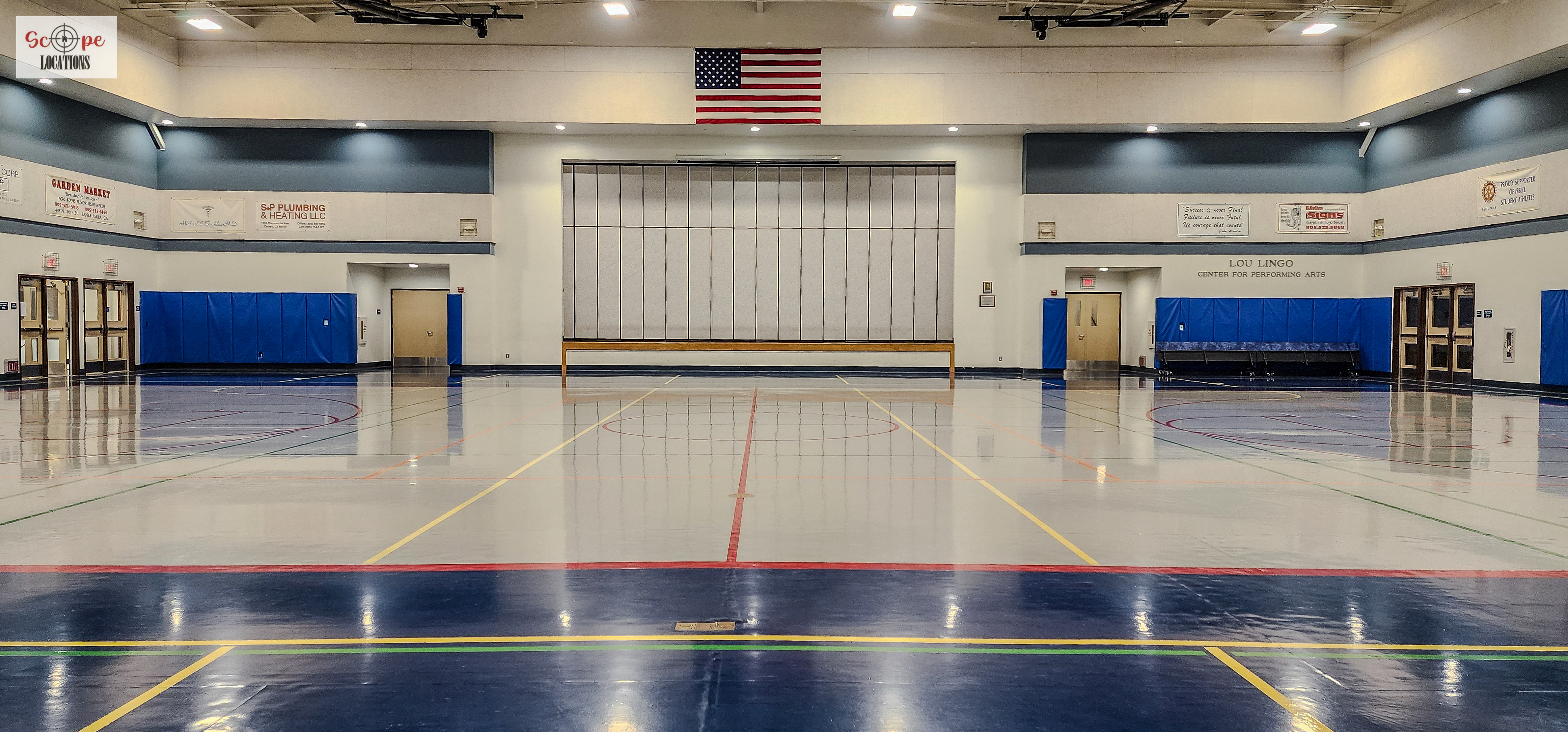 • New gymnasium with raised stage currently used as a workout room, bleacher seating, basketball courts, girls and boys locker rooms, and PE office