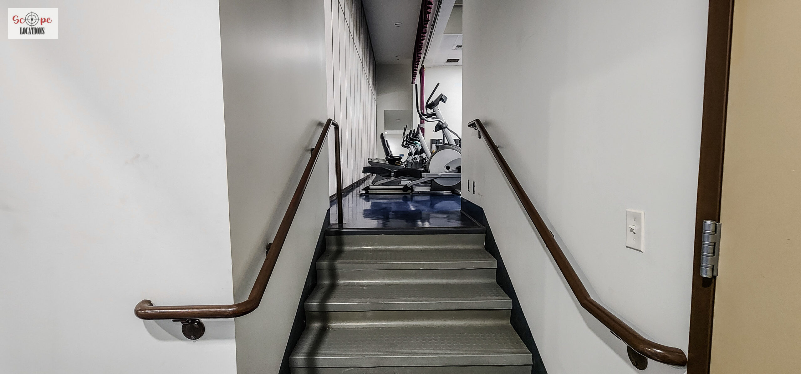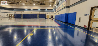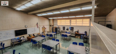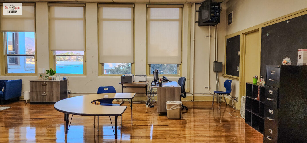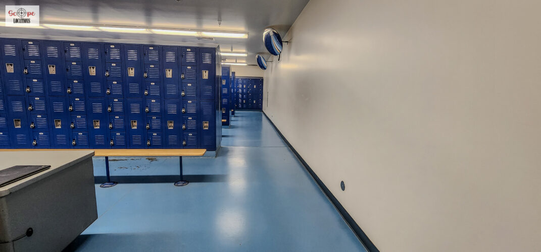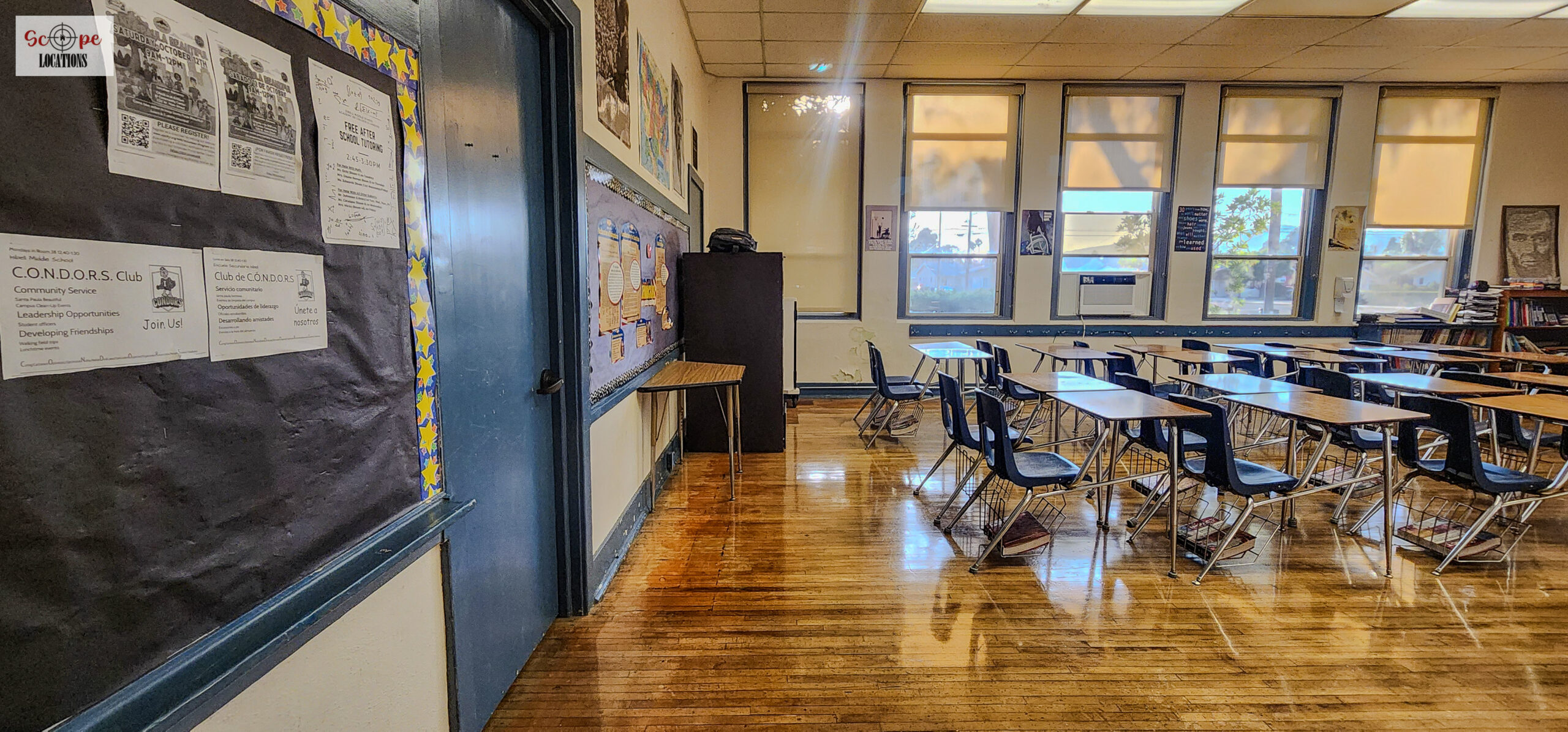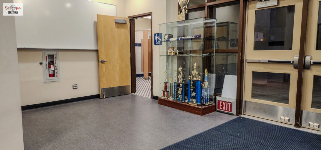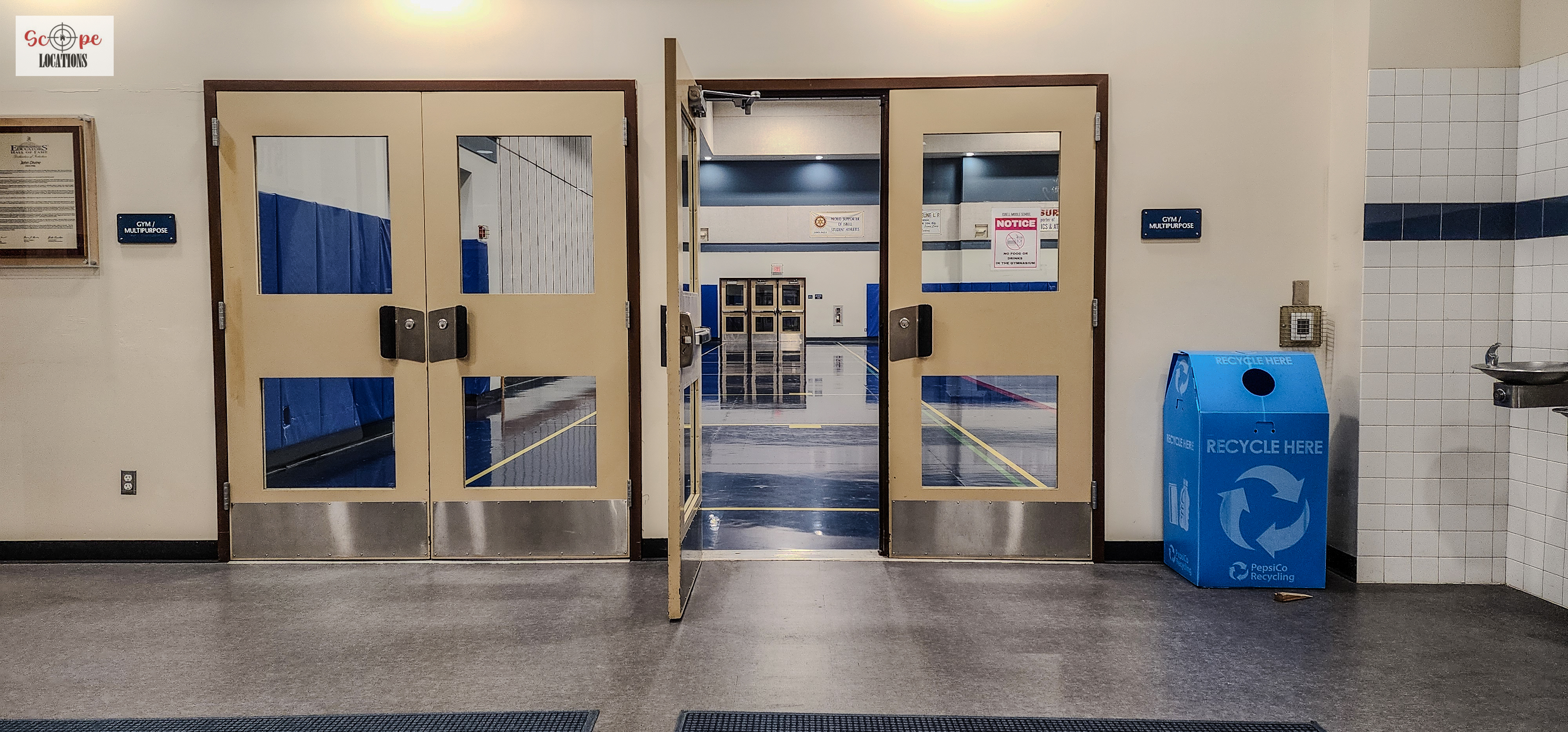 • New gymnasium with raised stage currently used as a workout room, bleacher seating, basketball courts, girls and boys locker rooms, and PE office
