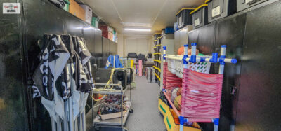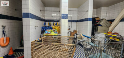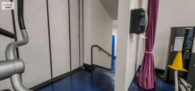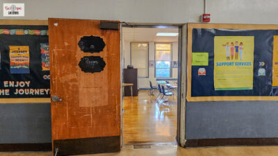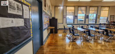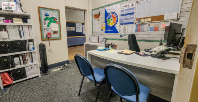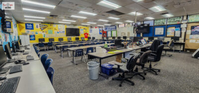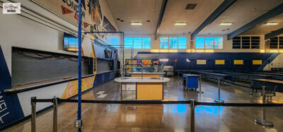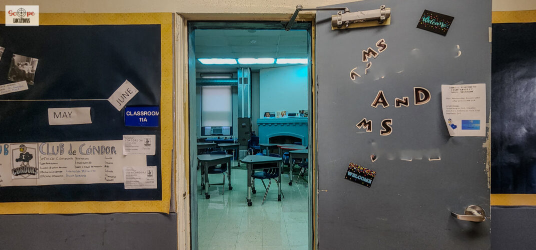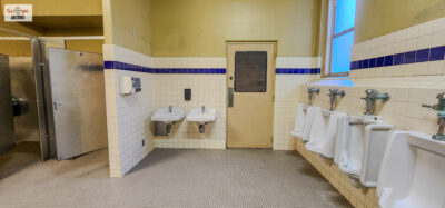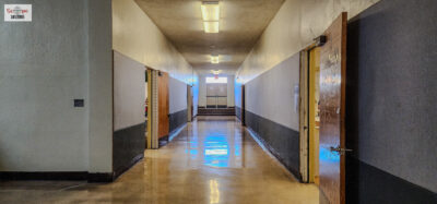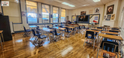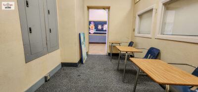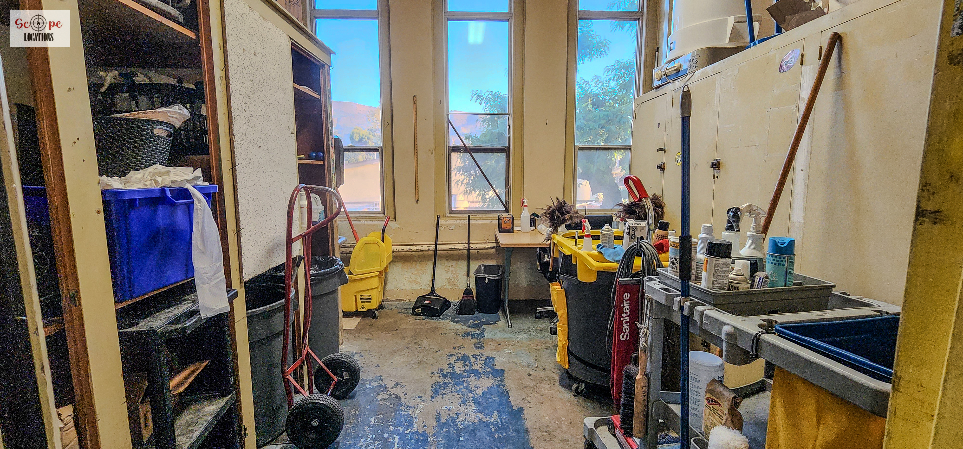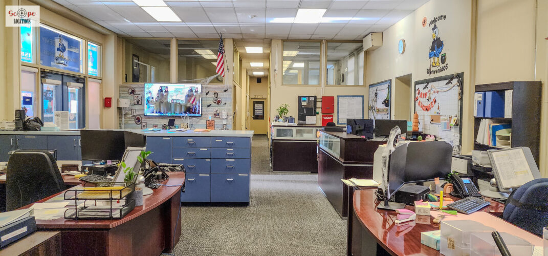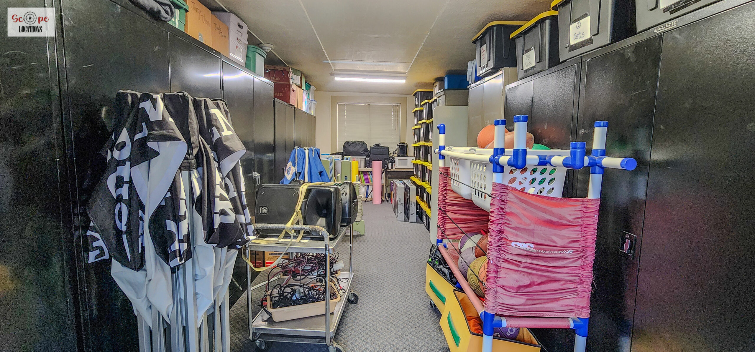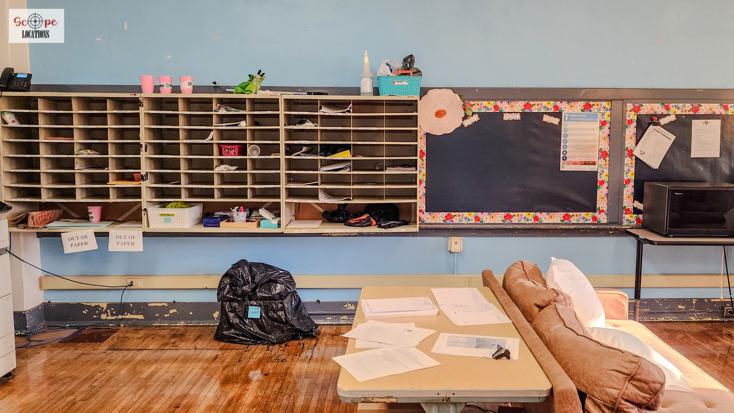 • New gymnasium with raised stage currently used as a workout room, bleacher seating, basketball courts, girls and boys locker rooms, and PE office