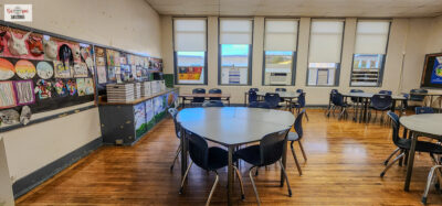 • Cafeteria/Auditorium with indoor seating and outdoor covered eating area