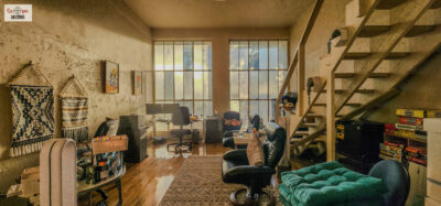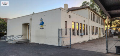 Traditional two-story rectangular building with large windows, originally constructed in the early 1900s and enhanced with modern upgrades. The architecture blends seamlessly with contemporary additions, creating a harmonious mix of classic and modern styles.