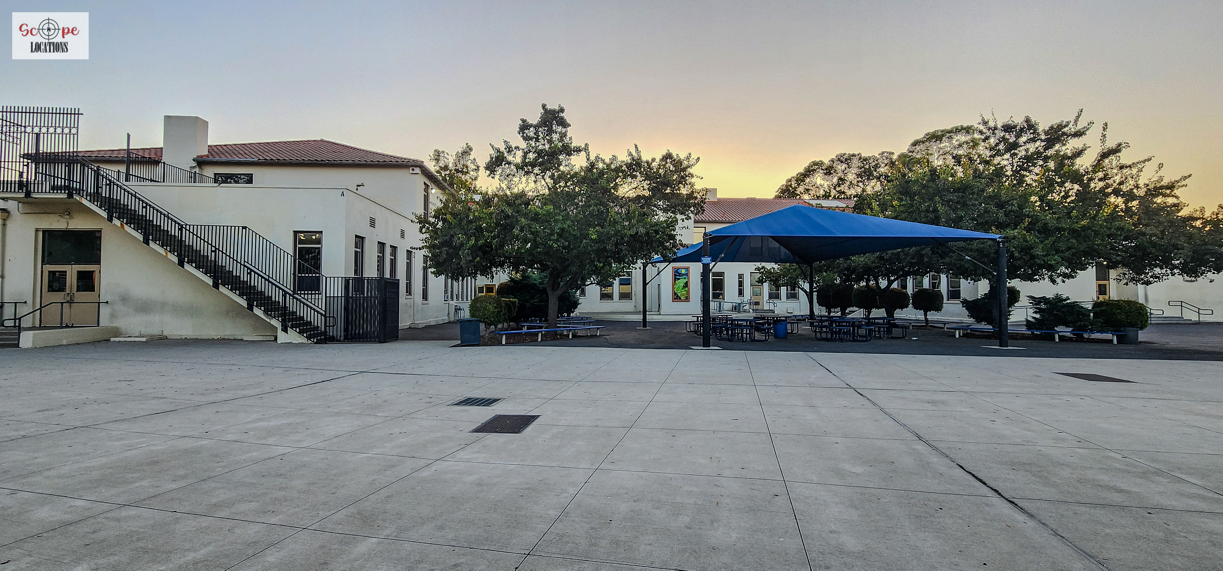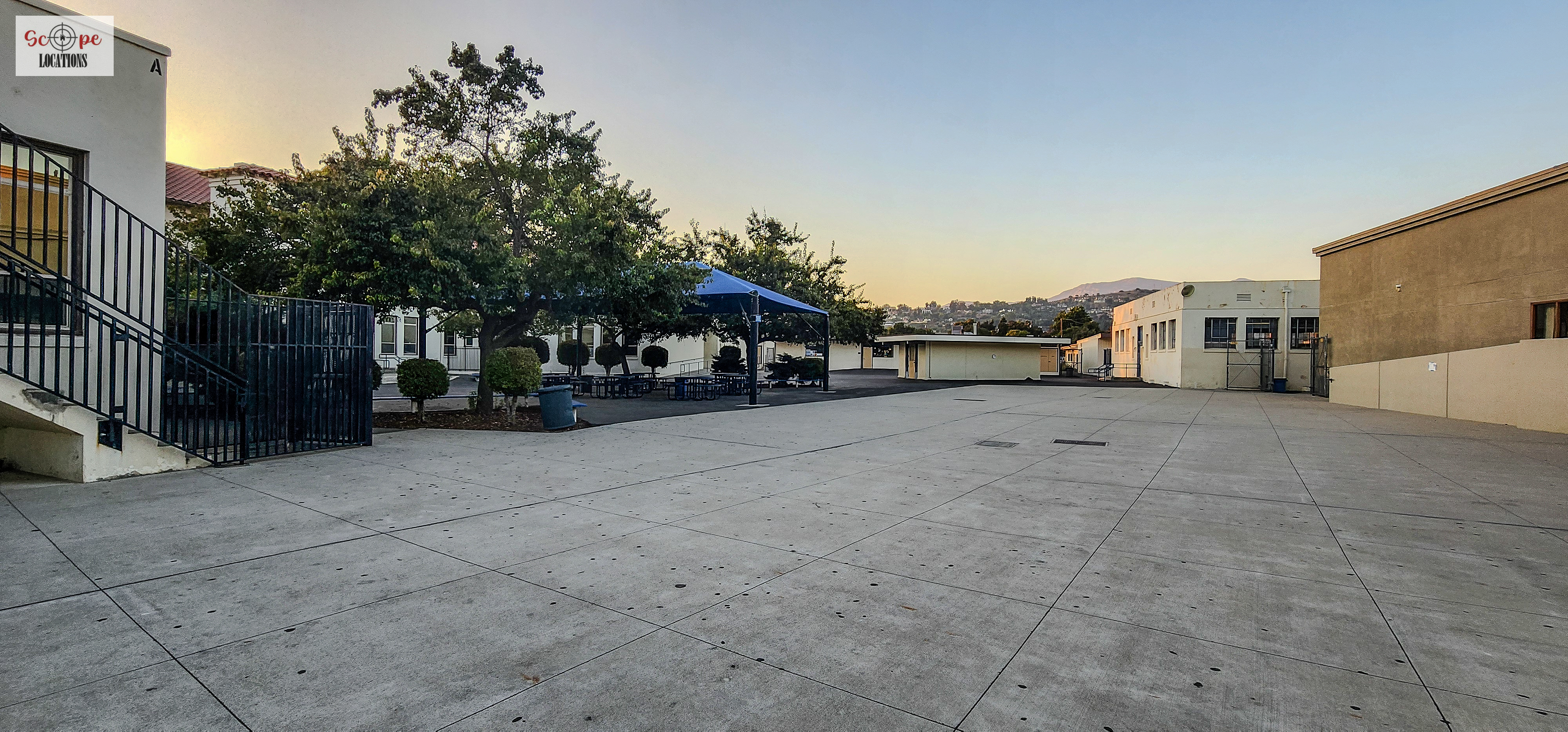 • Expansive campus with multiple athletic fields, including football/soccer fields, and blacktop basketball courts