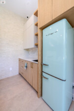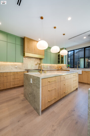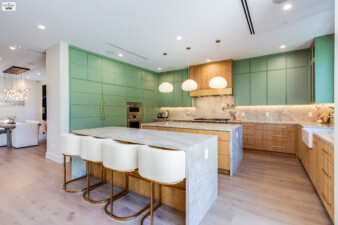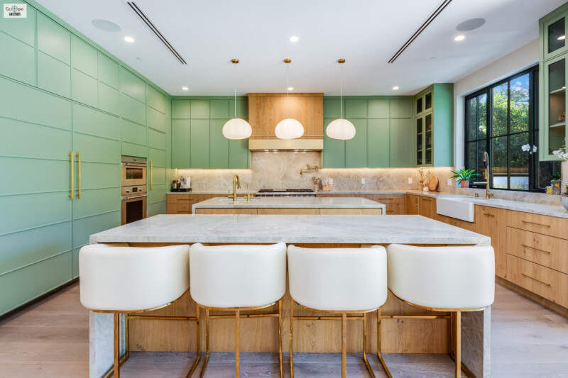 - A true showstopper with sleek mint green cabinetry that adds a unique pop of color.