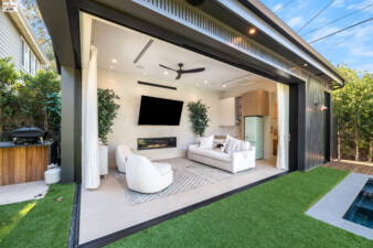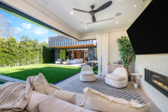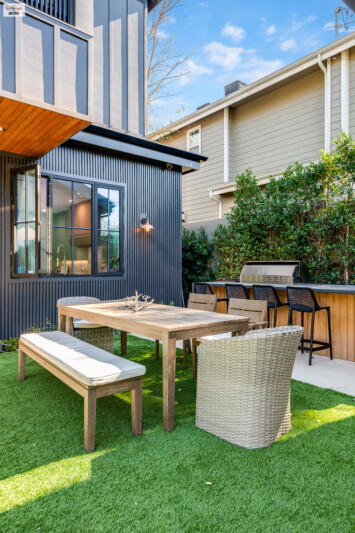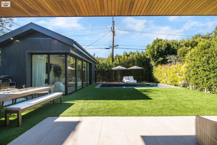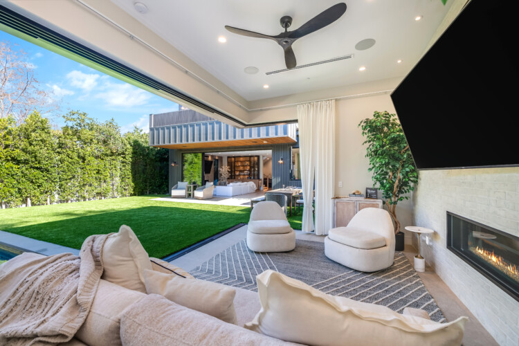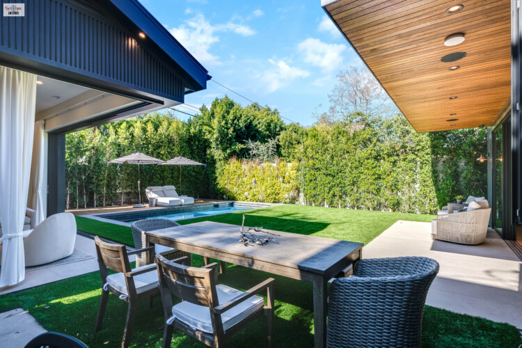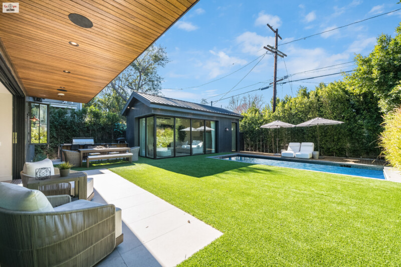 - Opens directly to the backyard through pocket doors, blurring the lines between indoor and outdoor living.
