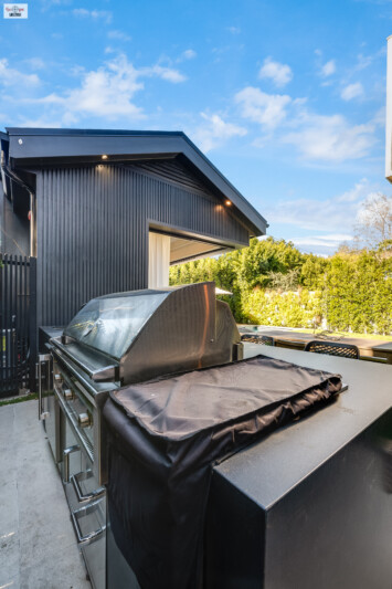 - The sparkling pool is complemented by a built-in BBQ area, making the backyard ideal for outdoor entertaining scenes.