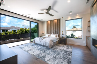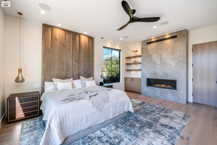 Hardwood FloorsCeiling FansRecessed LightingModernLight Color PaletteAccent/Featured WallBalcony AccessFireplaceLight & AiryPocket DoorsWalk-in Closet