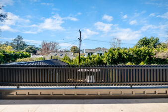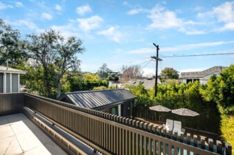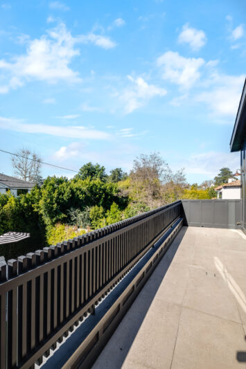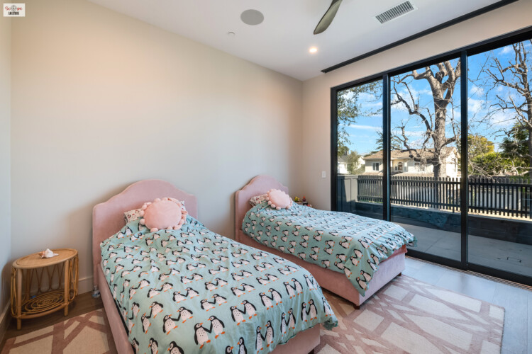 - Pocket doors lead to a private balcony overlooking the backyard, offering excellent opportunities for overhead or wide-angle shots.