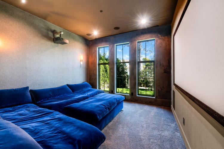 Downstairs front facing room; used as an in-home theatre