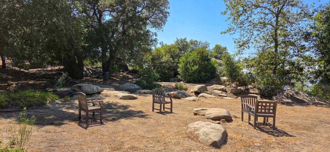 Serene meditation gardens offering peaceful, cinematic backdrops