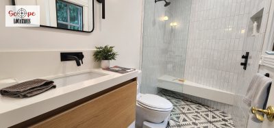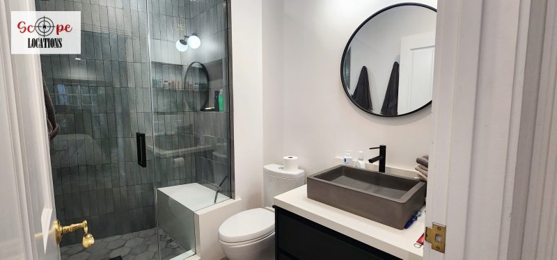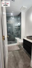 Tile FloorsRecessed LightingWall Sconces Glass Shower EnclosureSingle SinkTiled Walls