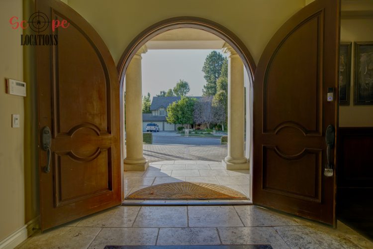 EXCLUSIVE: Stunning Mediterranean-style filming location, featuring 5 bedrooms and 5 baths. Arched double doors open to a grand entryway with a curved staircase. The expansive master bedroom boasts high ceilings, a stone fireplace reaching to the ceiling, oversized walk-in closet, and a luxurious master bathroom with his and hers sinks, a makeup counter, separate shower, and a large soaking tub.