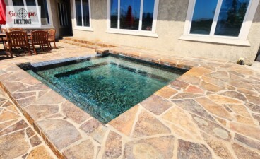 Outdoor patio with belly bar cocktail tables