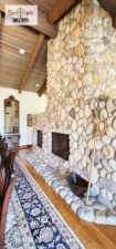 Full built-in rustic style bar with service room, kegerator, and full-size refrigerator