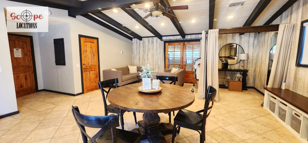 This ranch offers a diverse range of filming opportunities with multiple single-family residences, each boasting its distinct style and aesthetic. From a large 9-bedroom hilltop estate featuring western decor and breathtaking views of the ranch and valley, to a small, quaint cottage surrounded by lush greenery, this location is a one-stop shop for filmmakers.