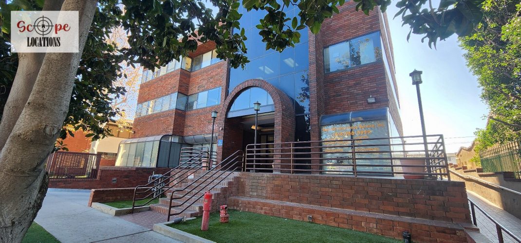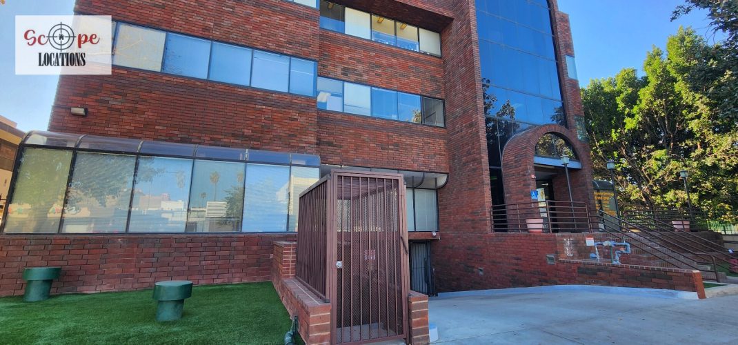 EXCLUSIVE: Nestled in the vibrant heart of Van Nuys, sits this distinctive brick office building. Offering three floors of potential filming spaces and an underground parking facility with circular concrete columns, this location provides a versatile backdrop for various scenes.