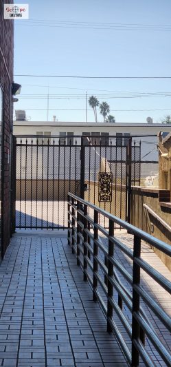 A notable feature is the long ramp leading to a large exterior open area, providing an opportunity for outdoor scenes. The architecture, both inside and out, combines modern elements with a classic aesthetic, making it an ideal location for a wide range of filming projects.