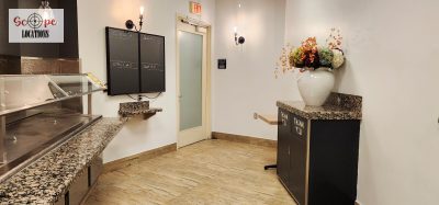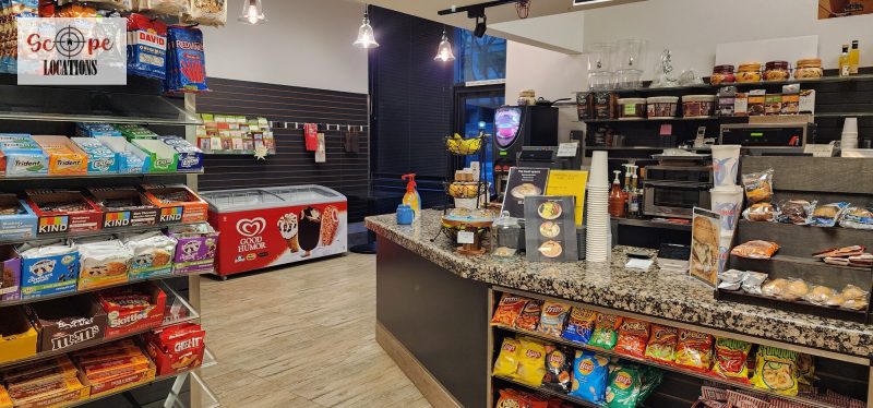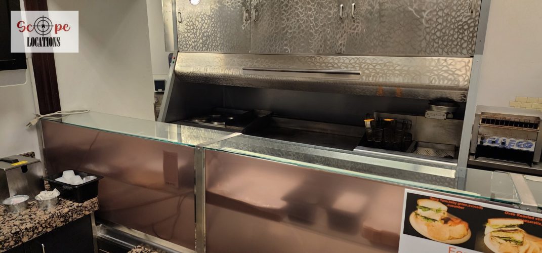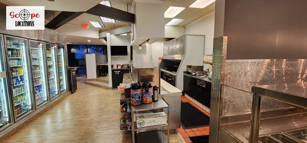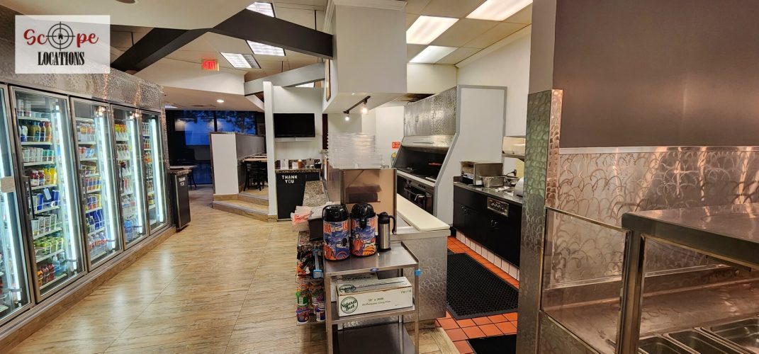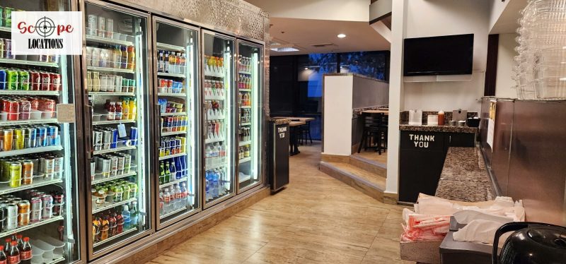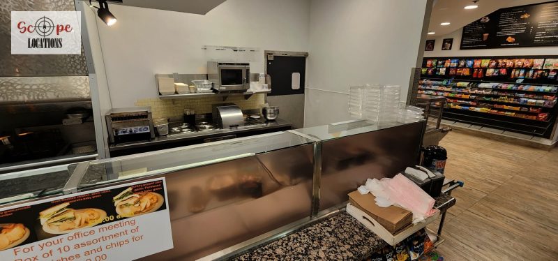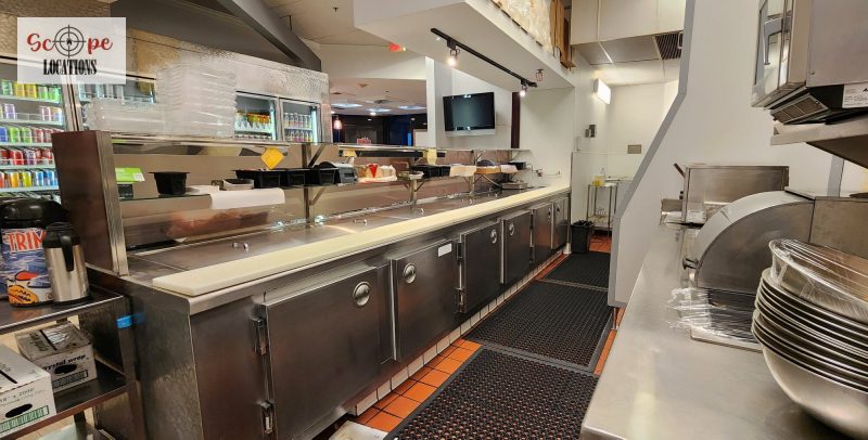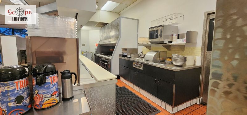 This versatile filming location seamlessly blends modern aesthetics with functionality, offering a dynamic backdrop for a range of creative projects set within the ambiance of a bustling cafe/restaurant in a corporate setting.