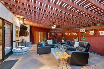 The covered patio and large outdoor space provide versatile shooting options, while easy parking ensures smooth production logistics.