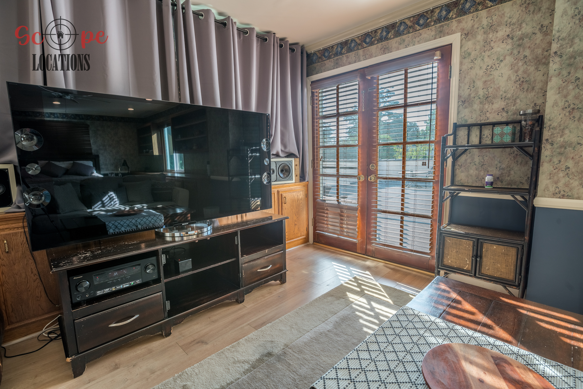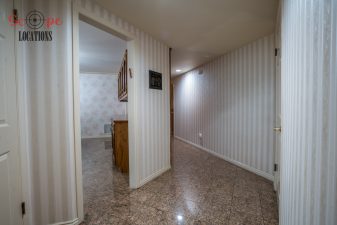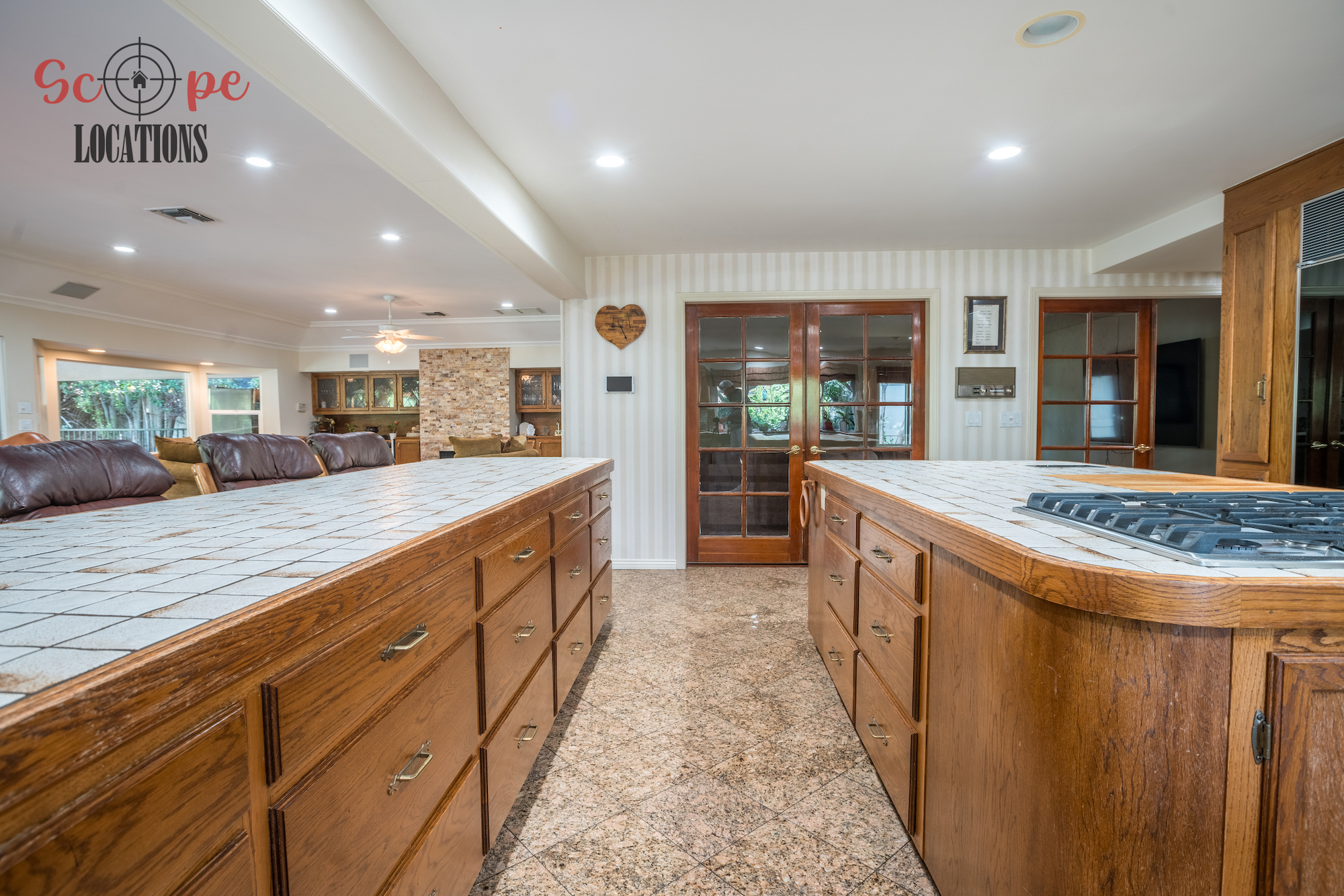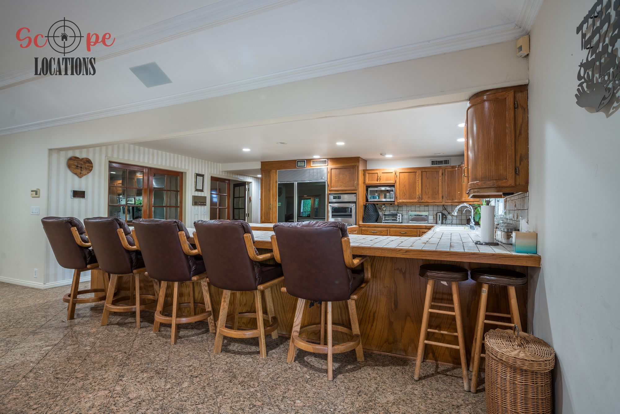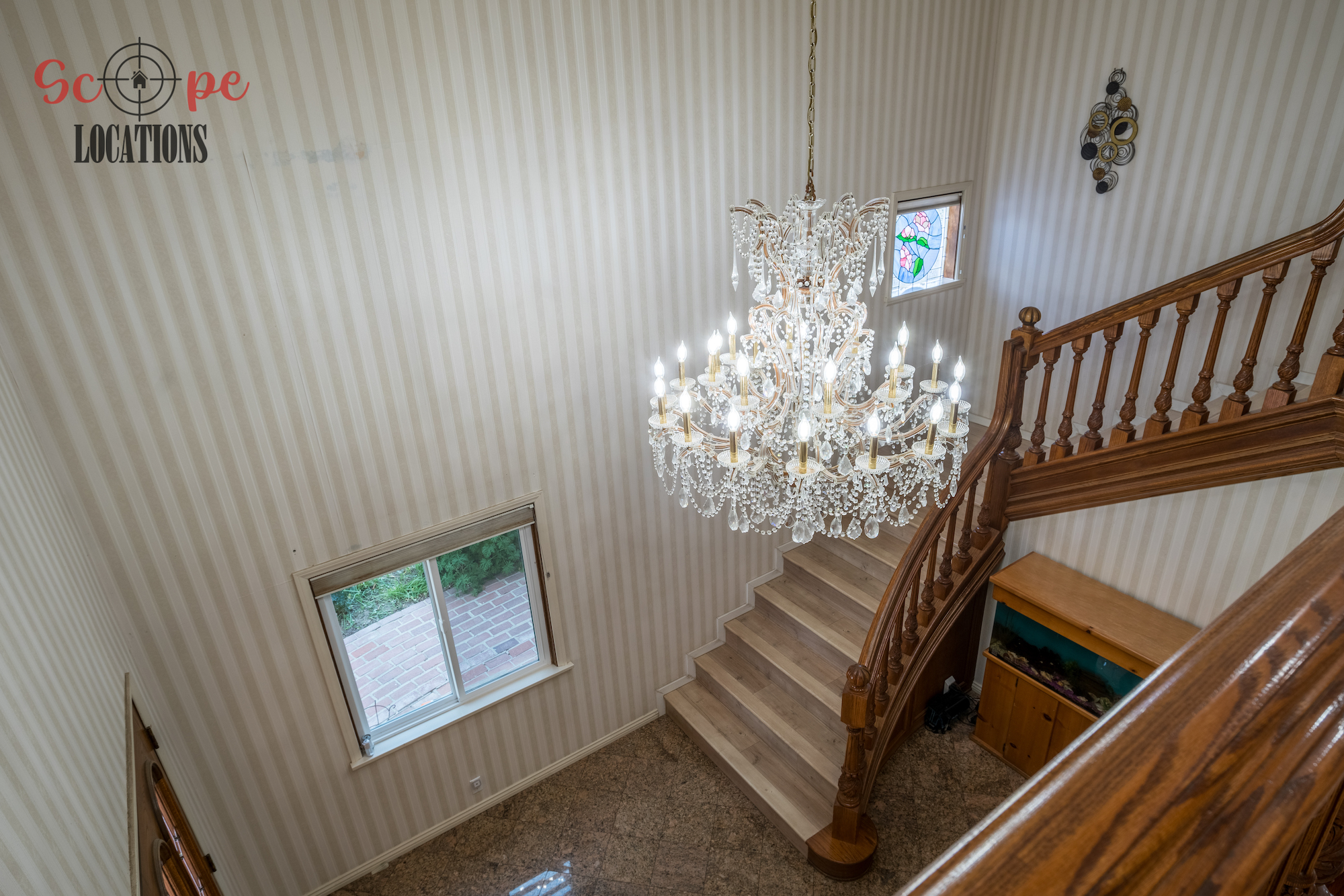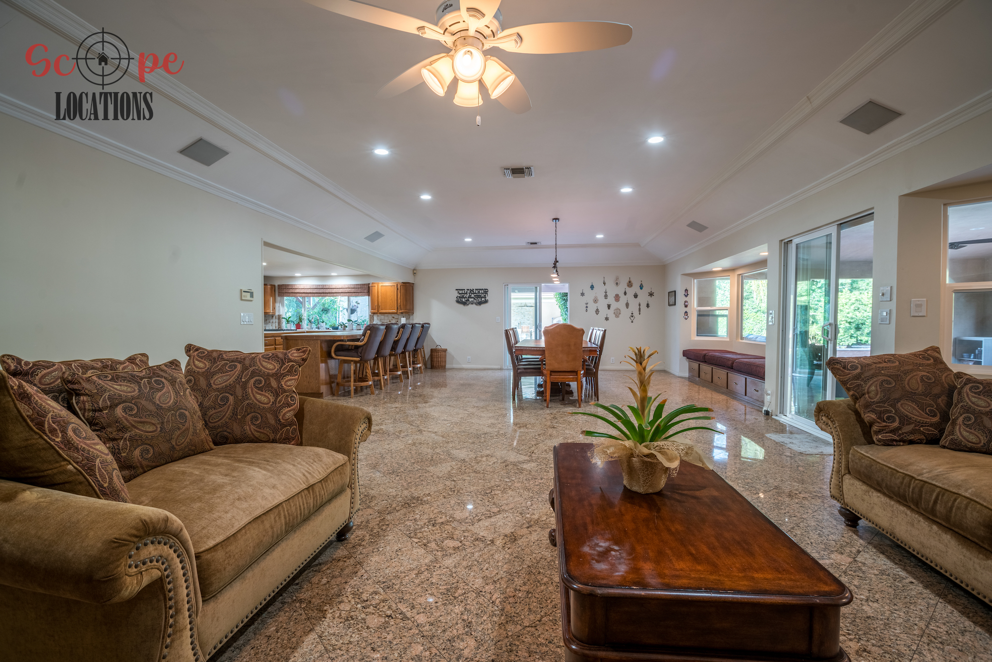 Step into this vast 5,000 sq ft gated home on 36,000 sf of flat land, offering an ideal canvas for your upcoming filming project. The interior unfolds with a study/office/library boasting walnut wooden cabinets, a fireplace, double French doors, and marble-tiled floors—a sophisticated setting for intellectual or intimate scenes. A secluded TV room, complete with its own bathroom and glass interior French doors, caters to characters in search of privacy. The formal dining room, now a billiards room with a crystal chandelier, marble-tiled floors, and floral wallpaper, introduces an elegant touch.